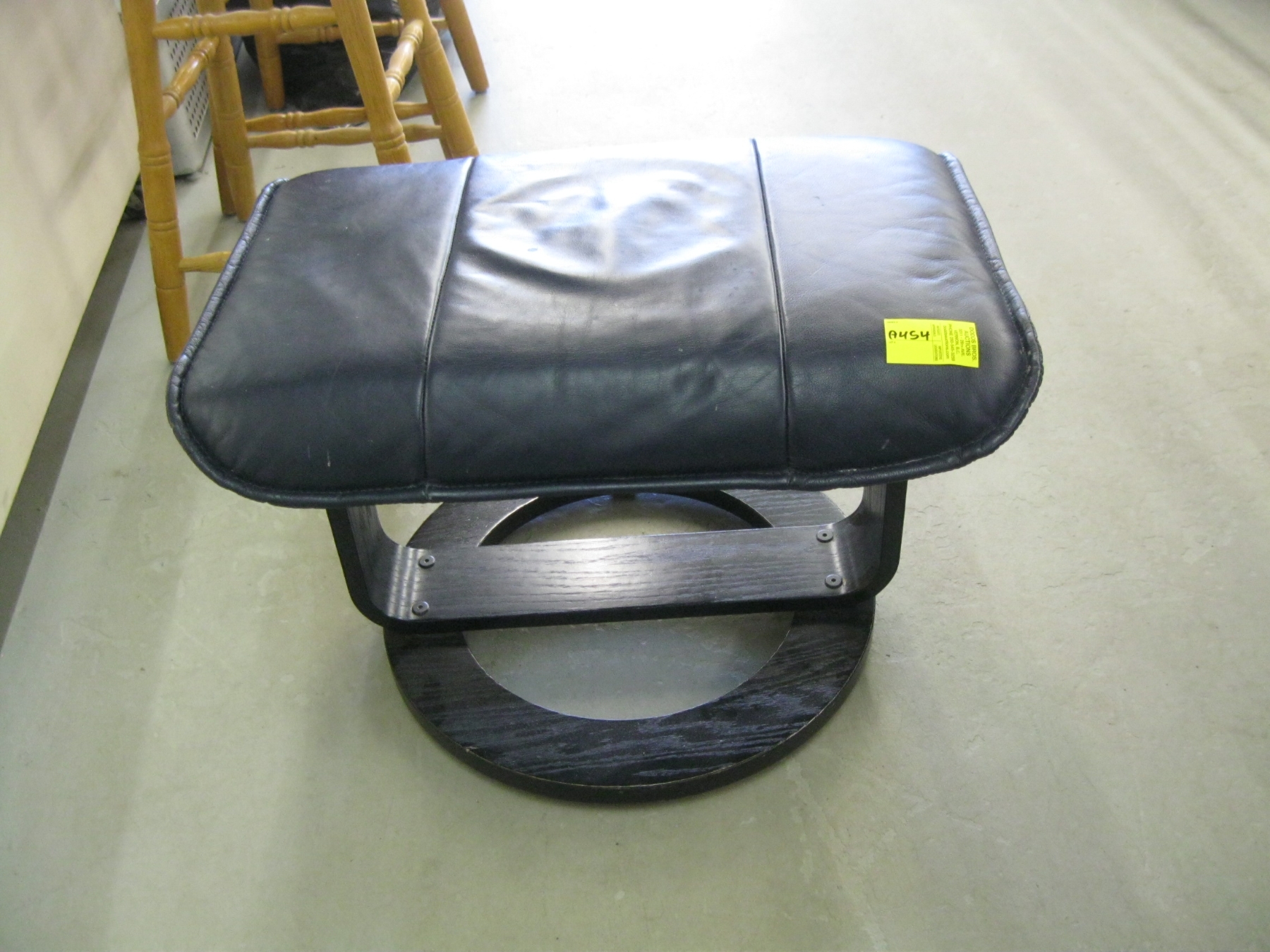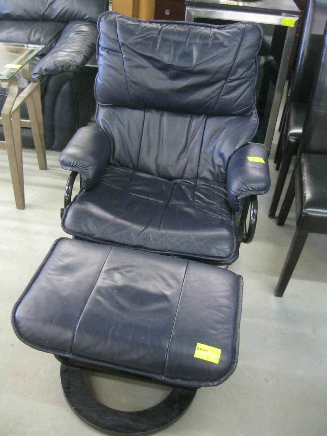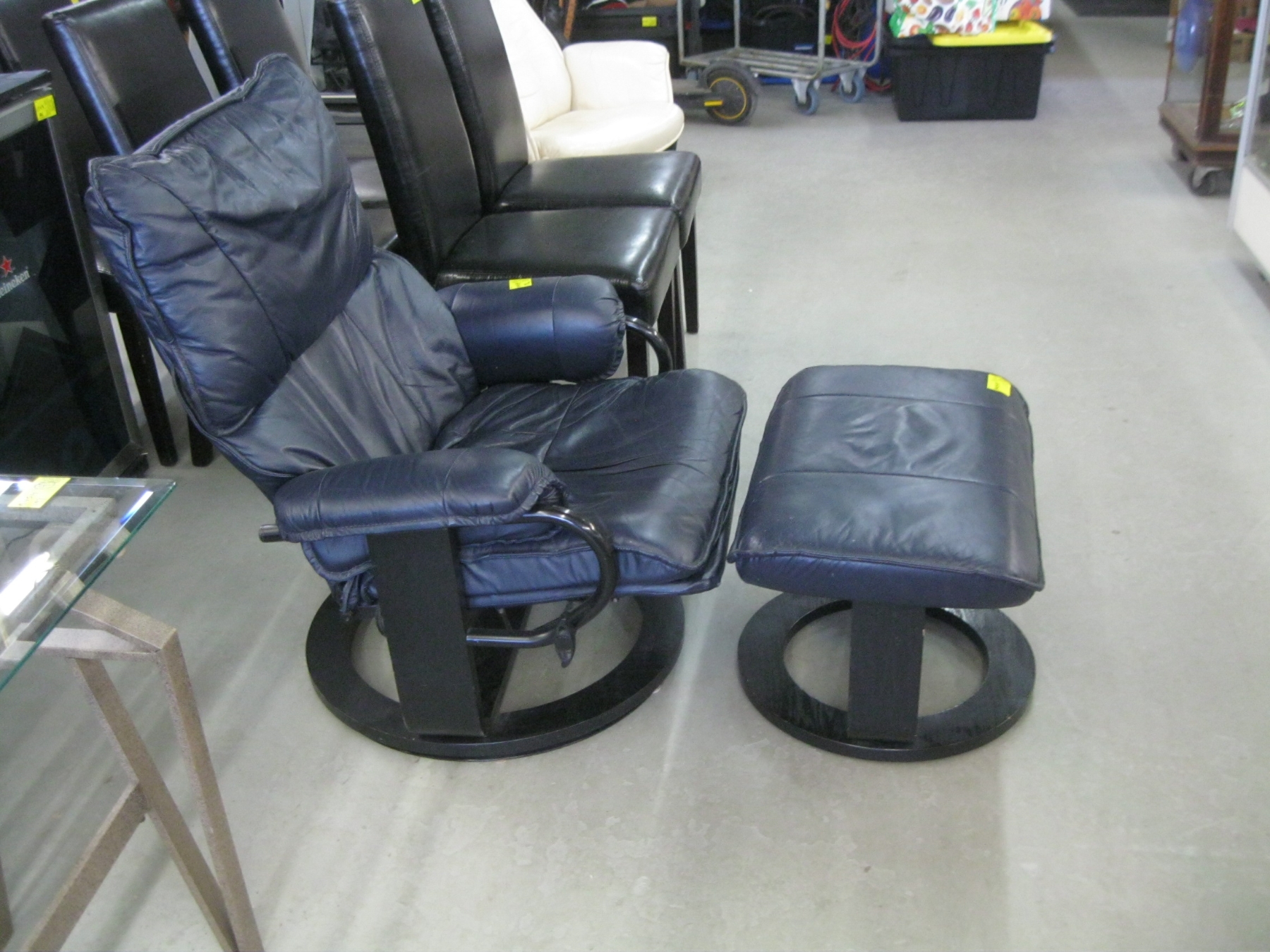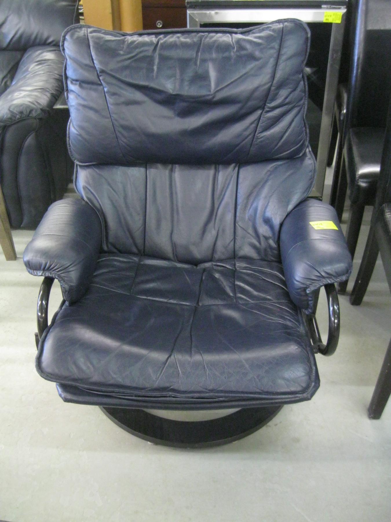 Lot 196 BLUE LEATHER SWIVEL CHAIR & FOOTSTOOL