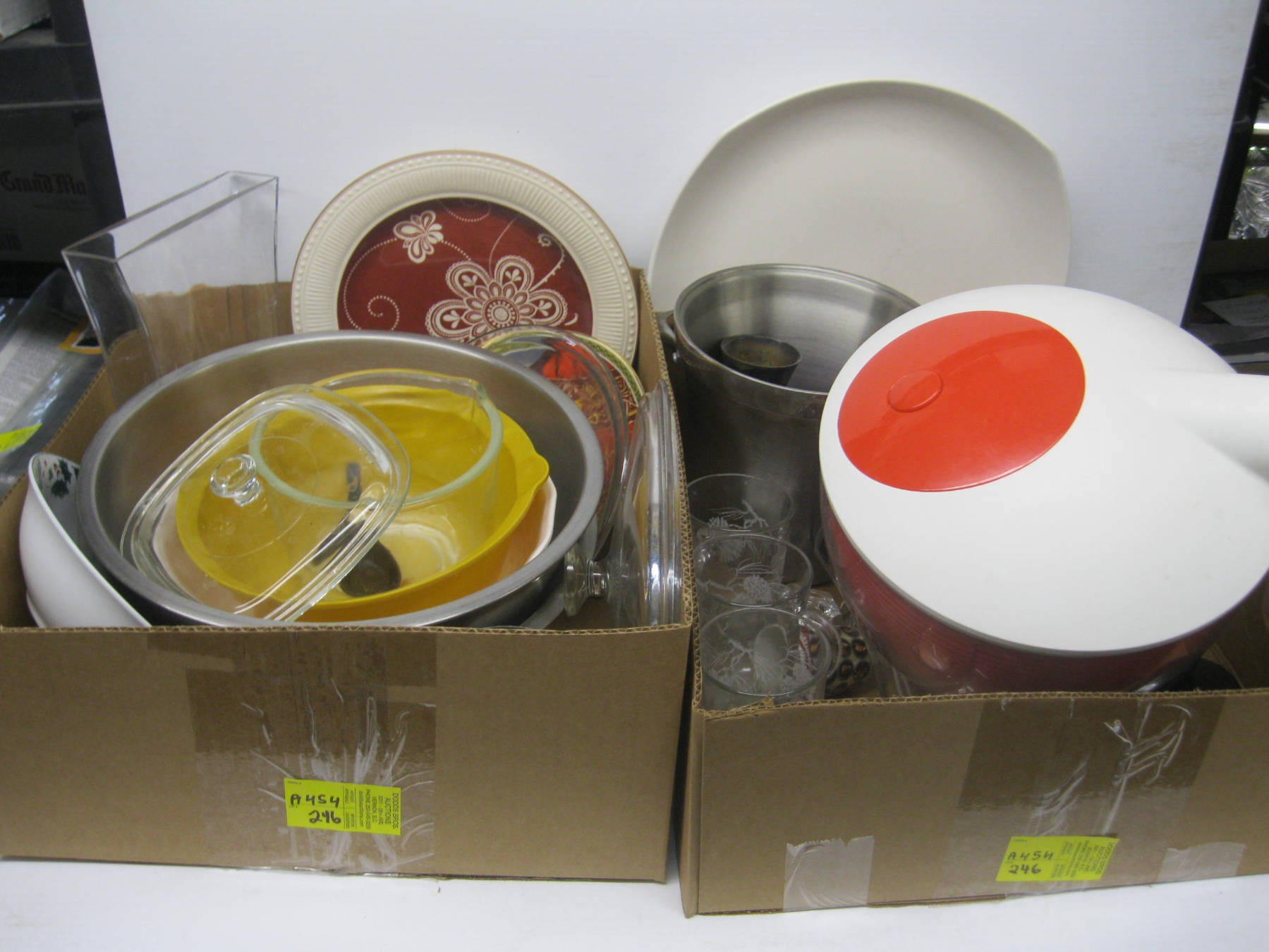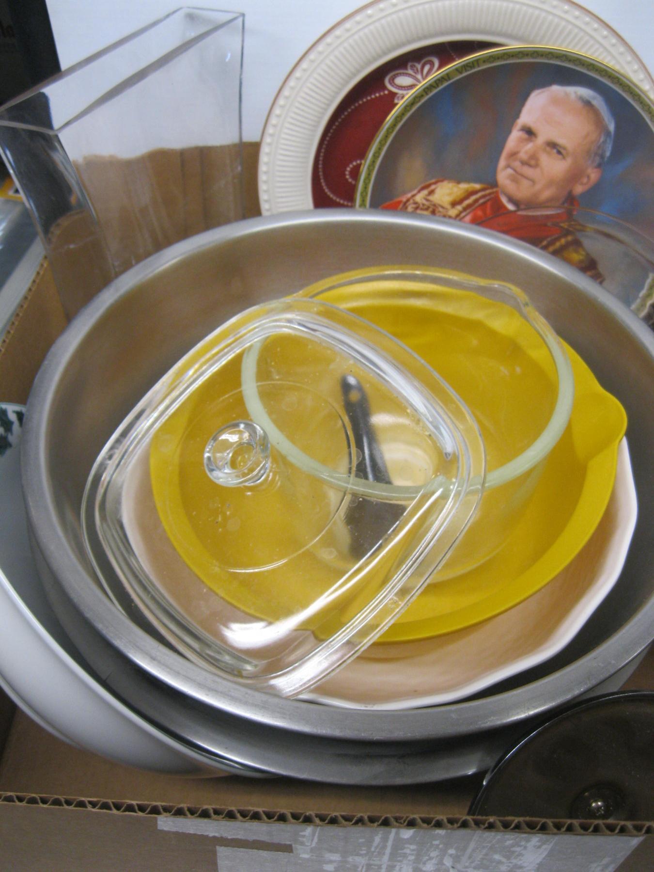 Lot 246 2 BOXES OF MISC. SALAD SPINNER, COLLECTOR PLATES, ETC.