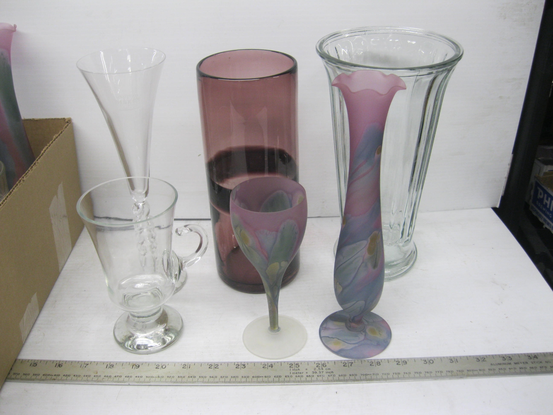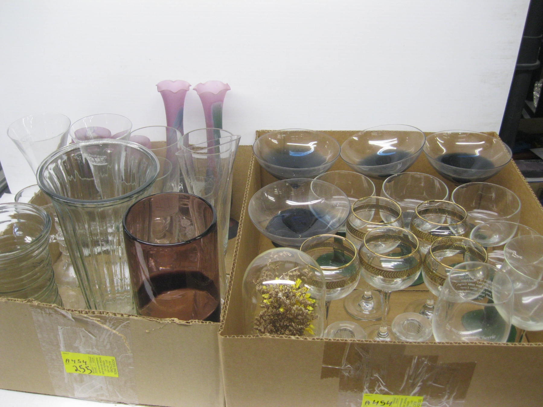 Lot 255 2 BOXES OF MISC. WINEGLASSES, VASES, ETC.