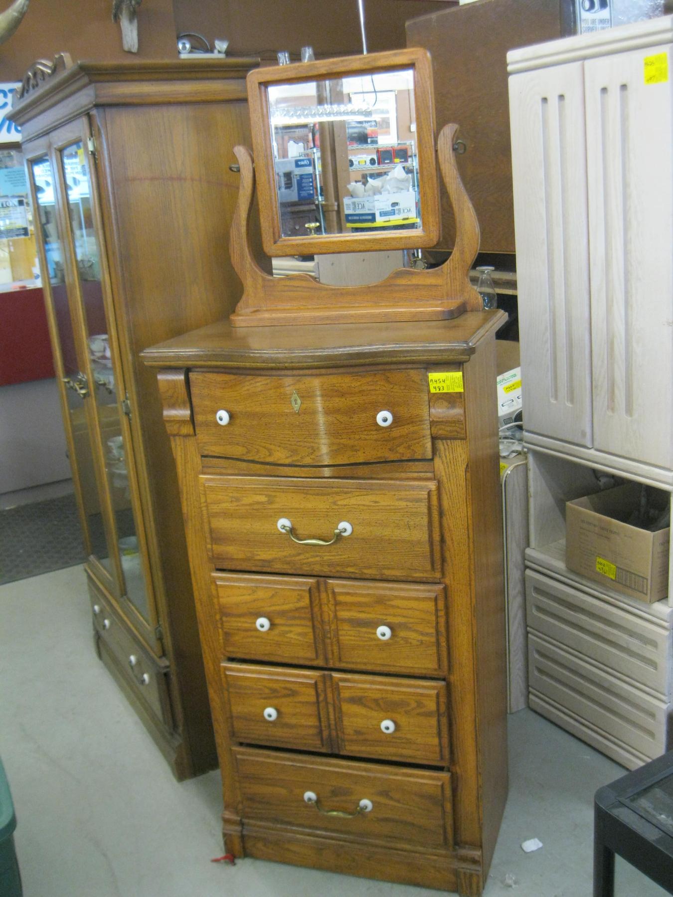 Lot 483 MATCHING OAK 5 DRAWER CHEST OF DRAWERS W/MIRROR