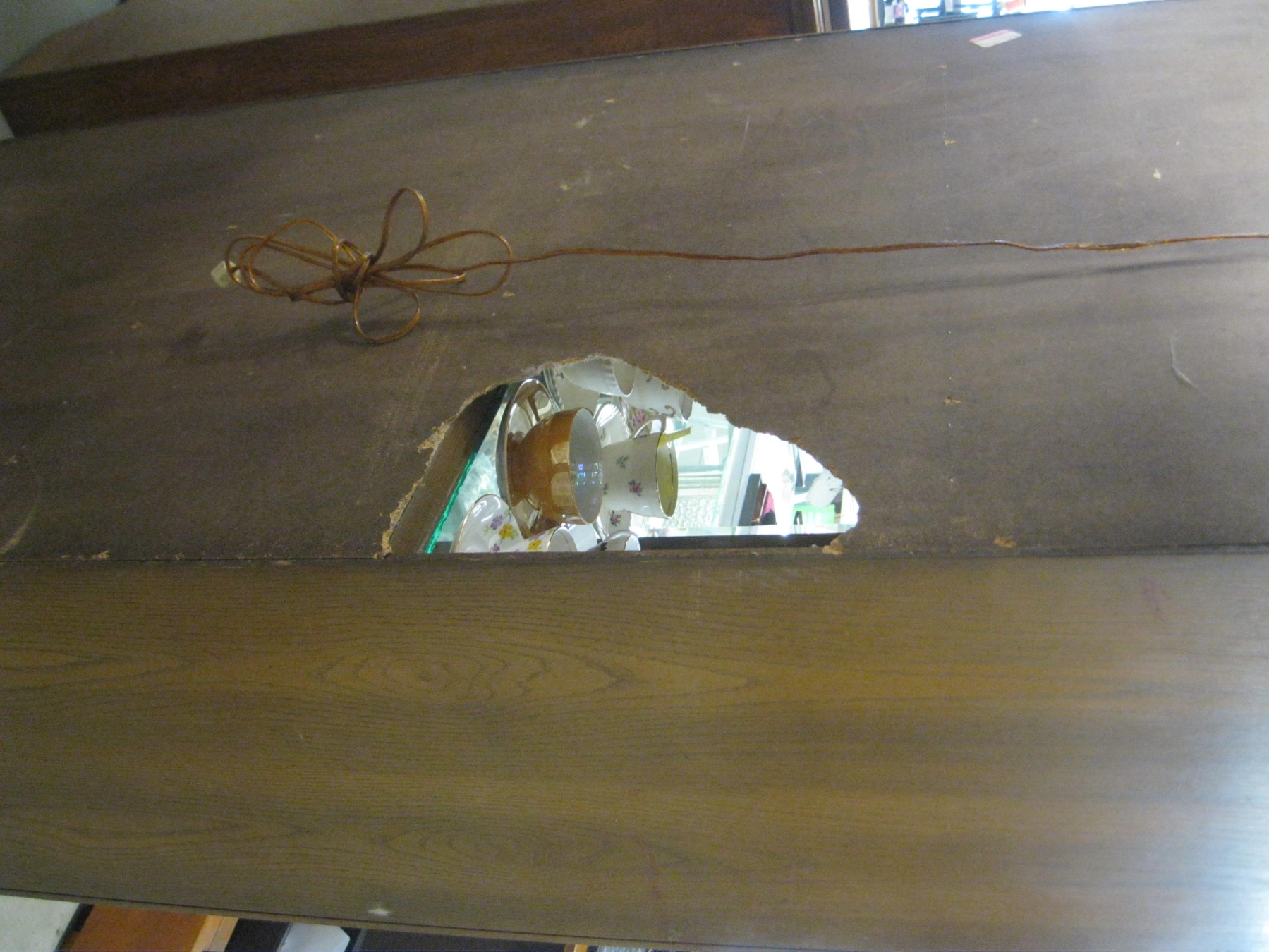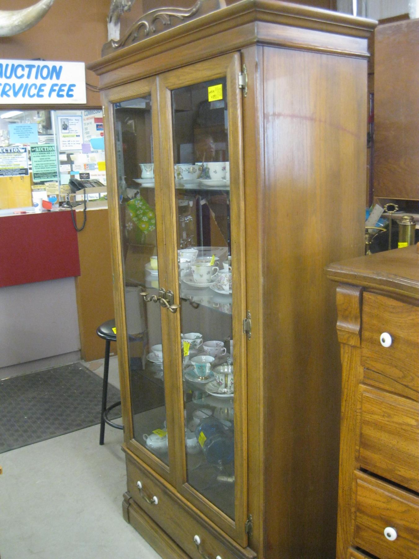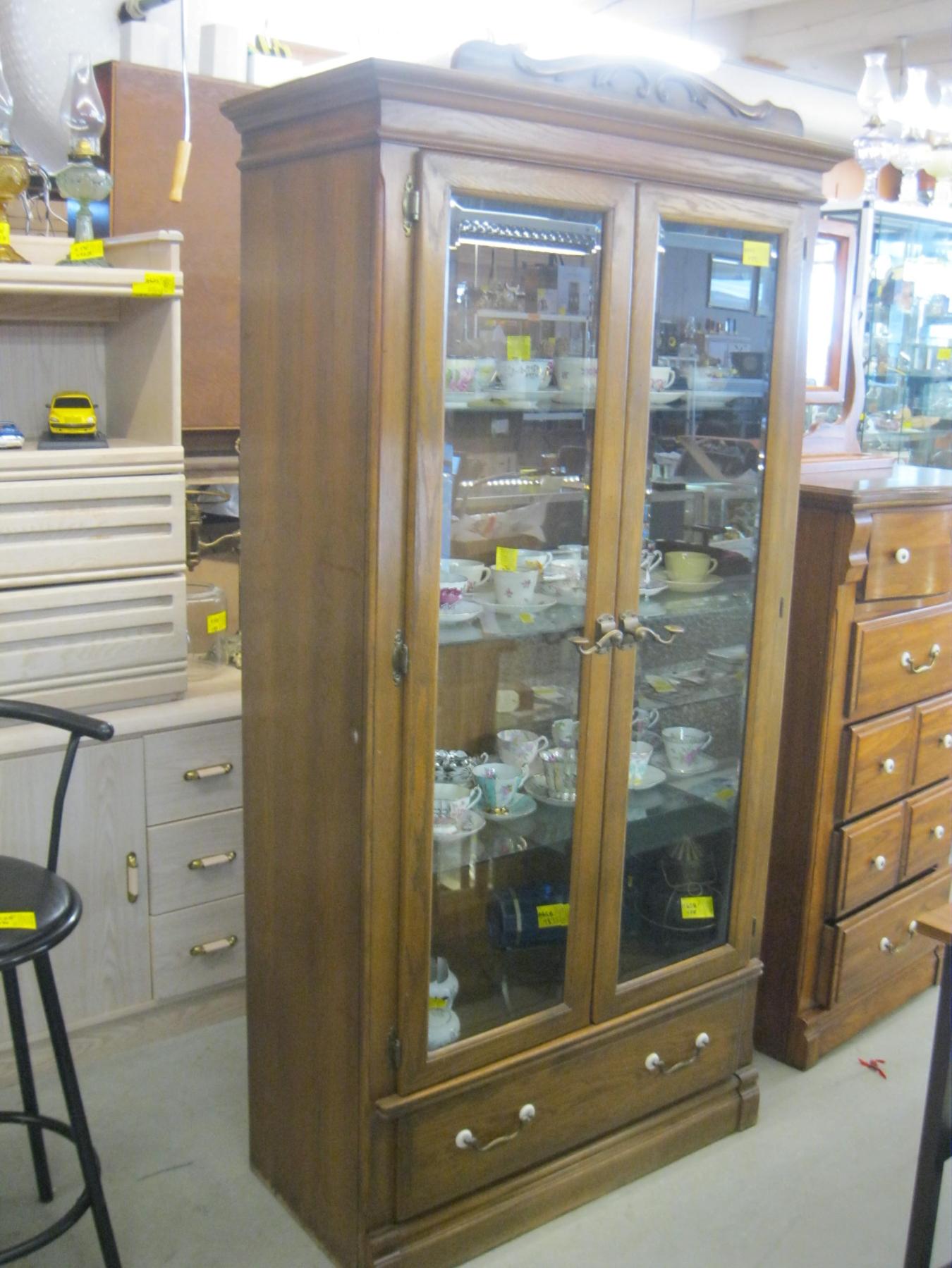 Lot 489 GLASS DOORED DISPLAY CABINET - BROKEN BACK