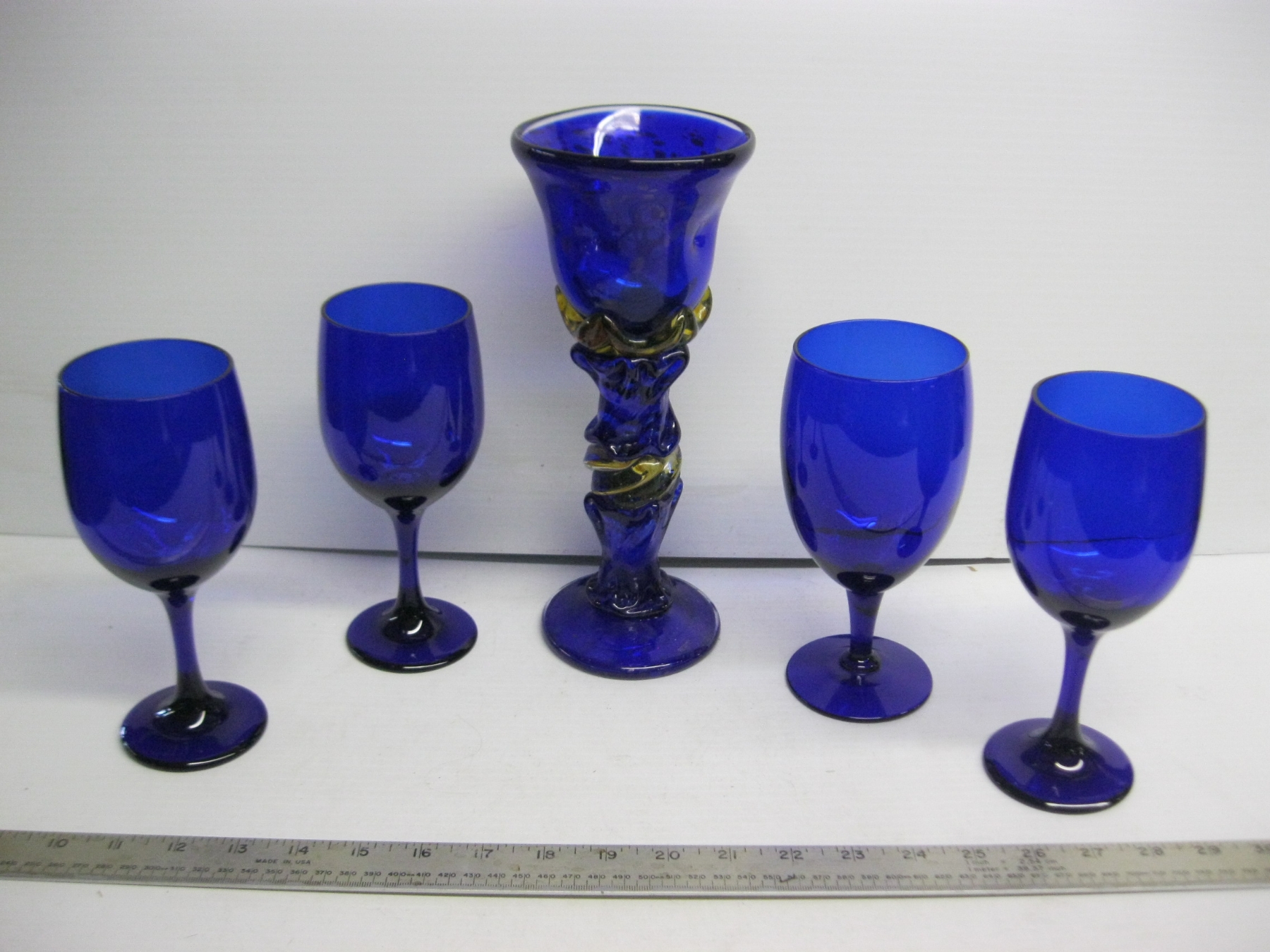 Lot 158 HAND BLOWN COBALT BLUE GOBLETS