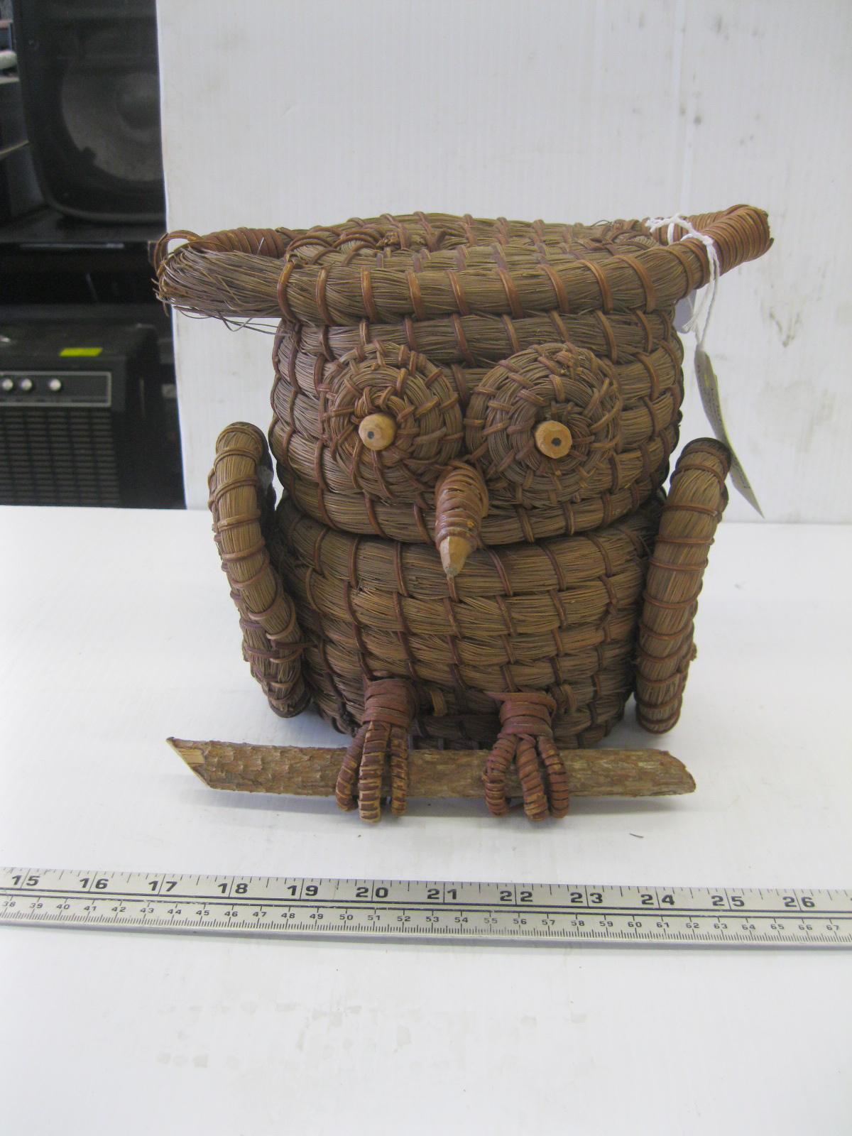 Lot 341 COUSHATTA LG. OWL PINE NEEDLE WOVEN BASKET