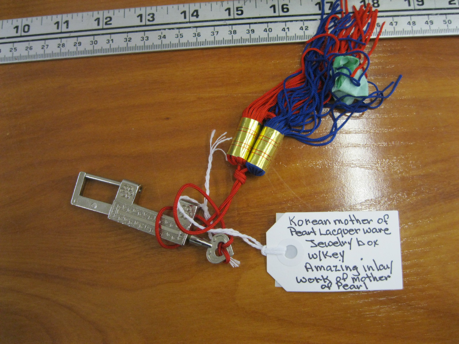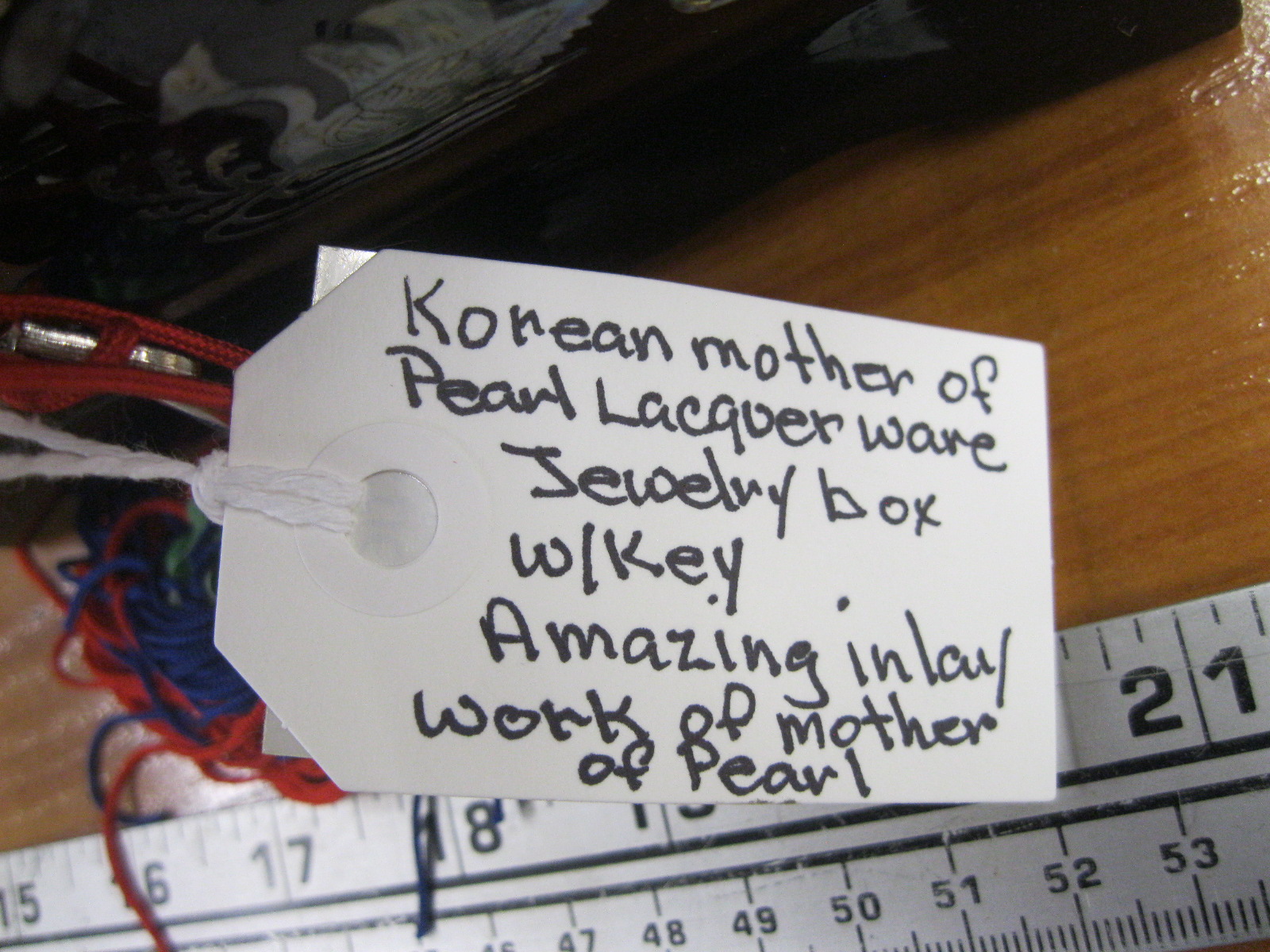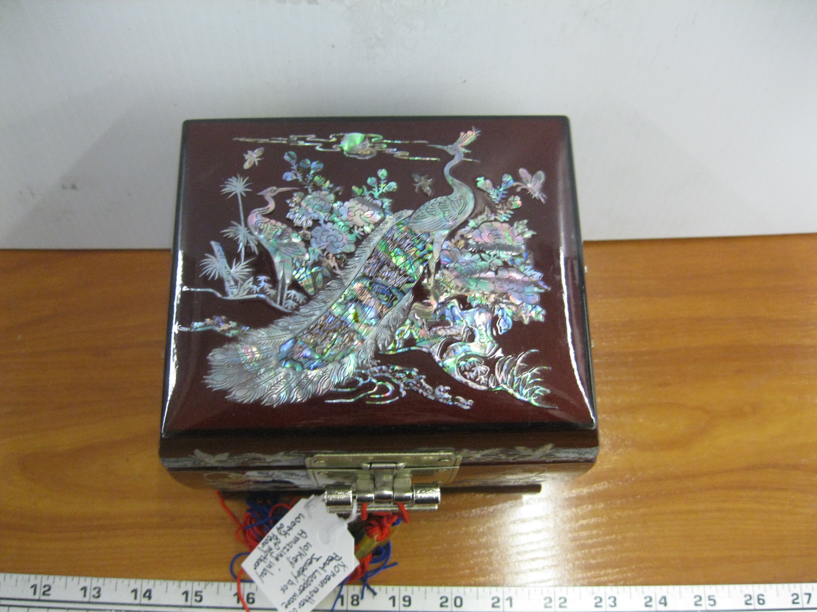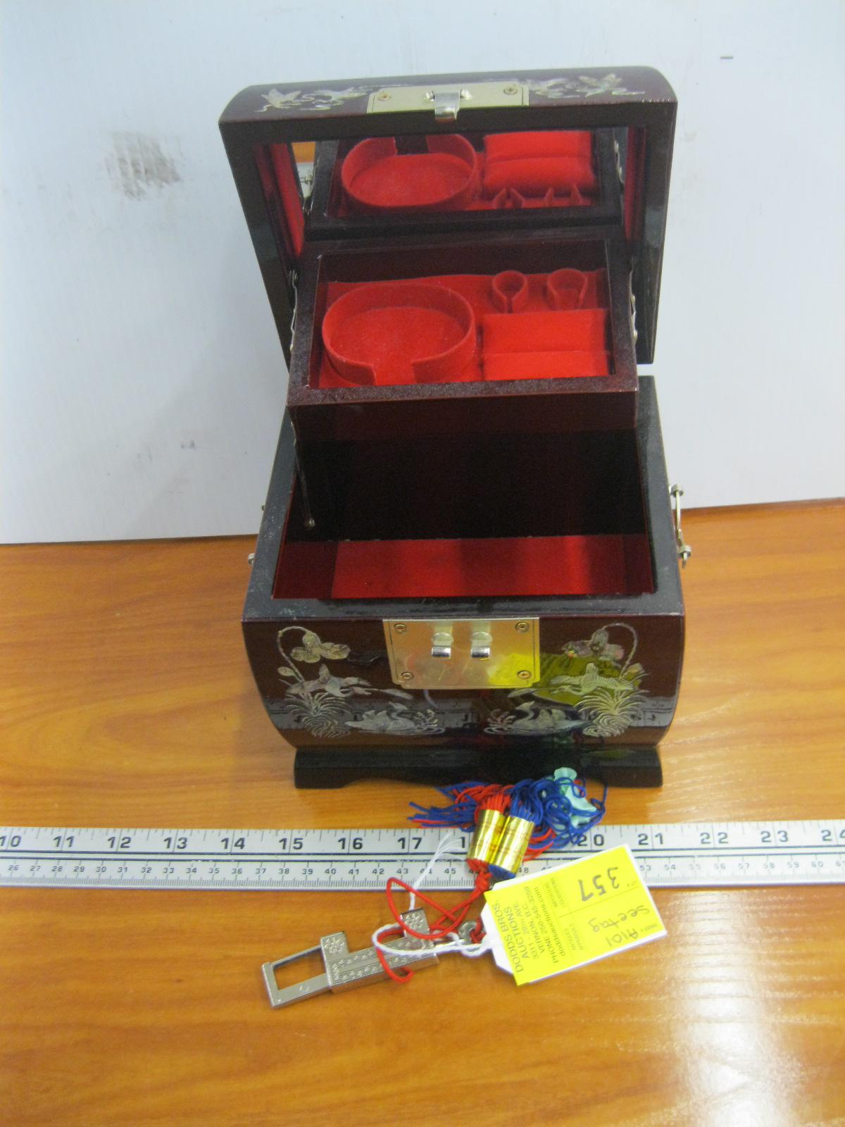 Lot 357 KOREAN MOTHER OF PEARL LACQUERWARE JEWELLERY BOX W/KEY