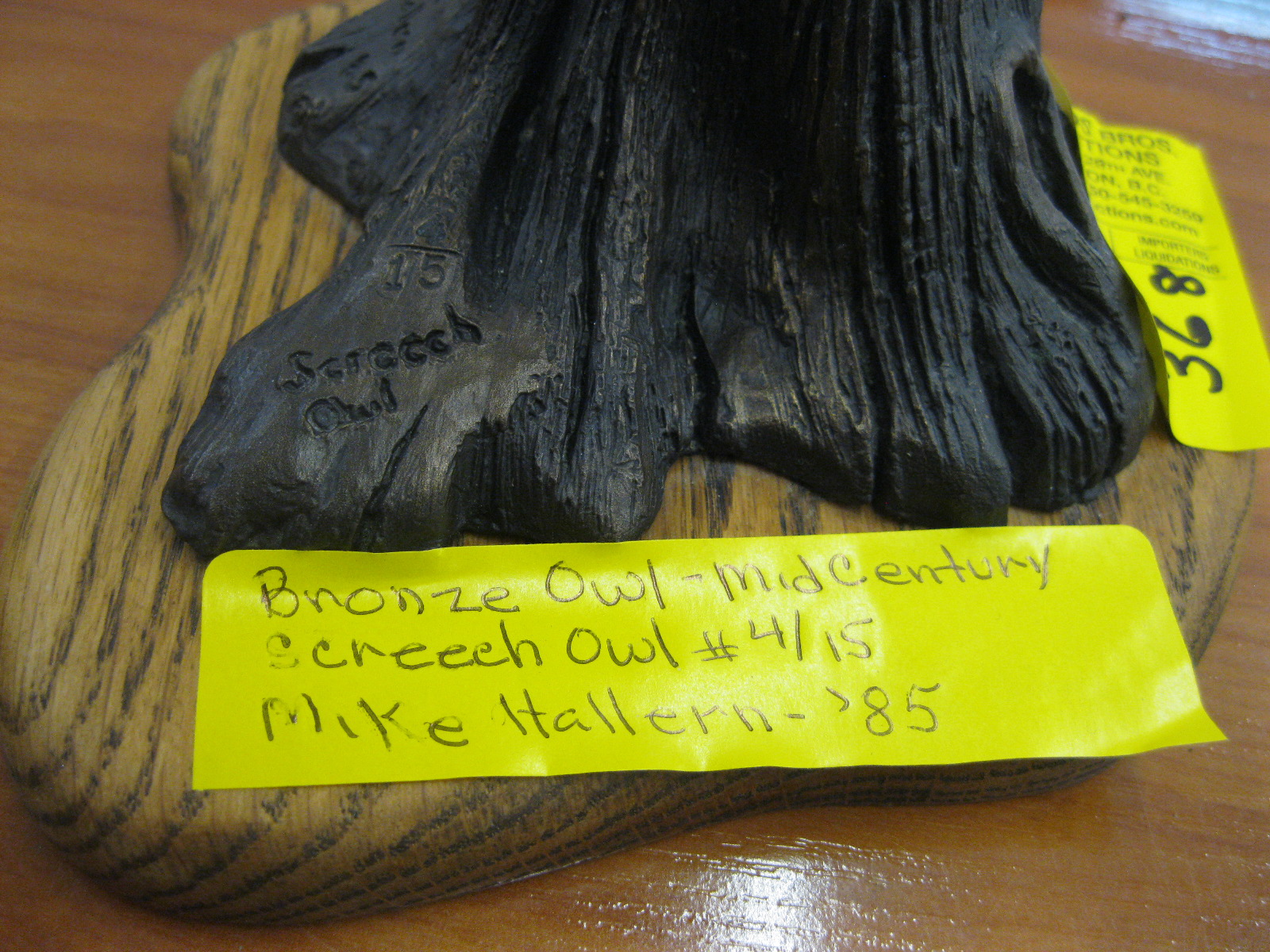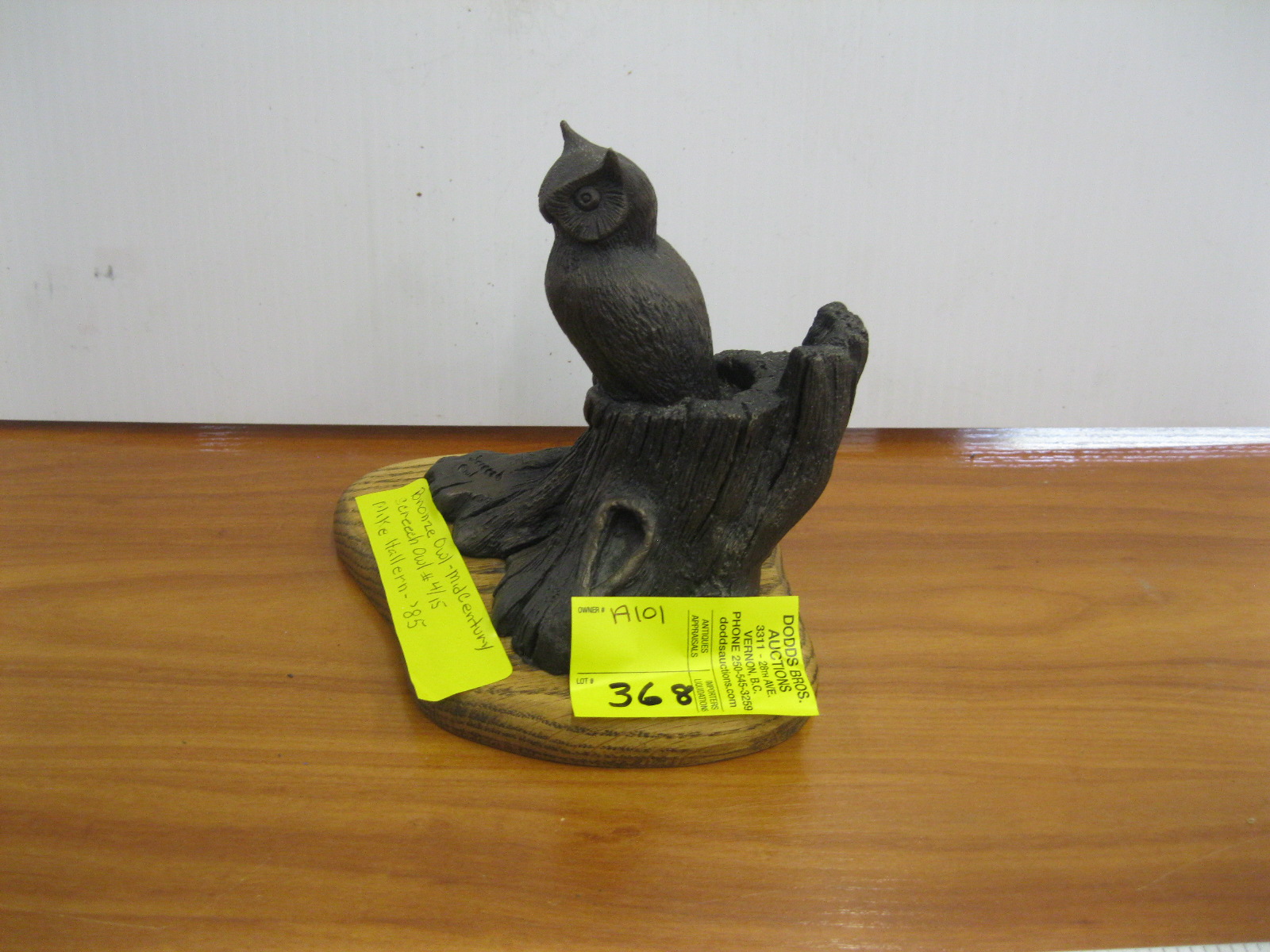 Lot 368 BRONZE OWL MCM SIGNED MIKE HOLERN