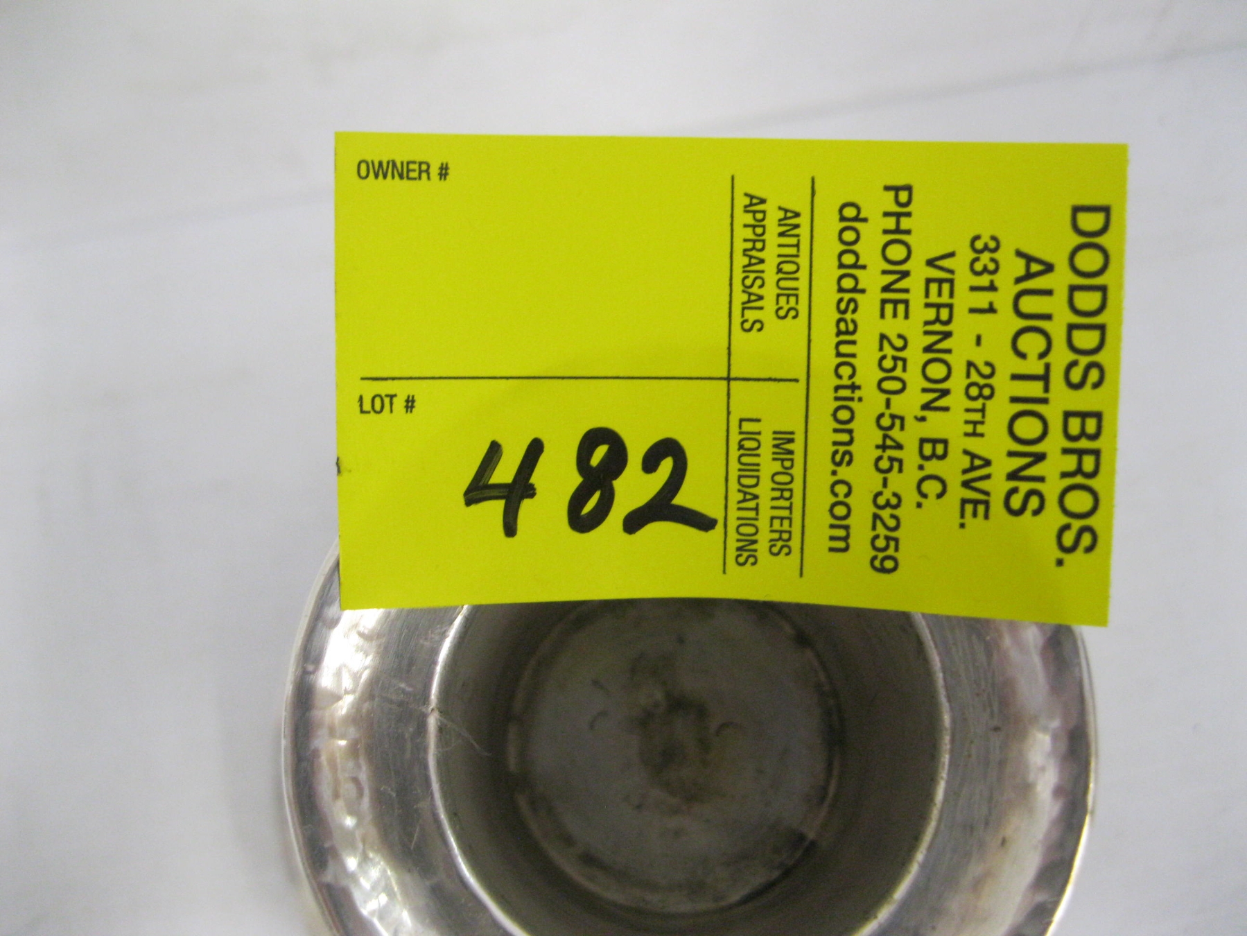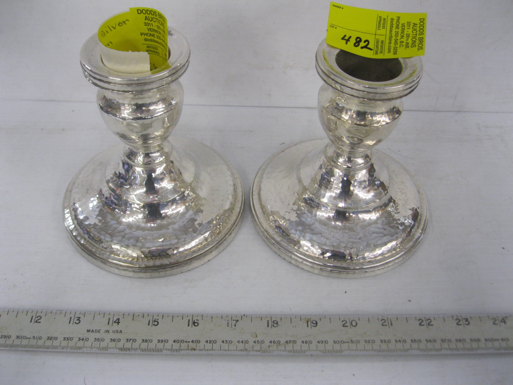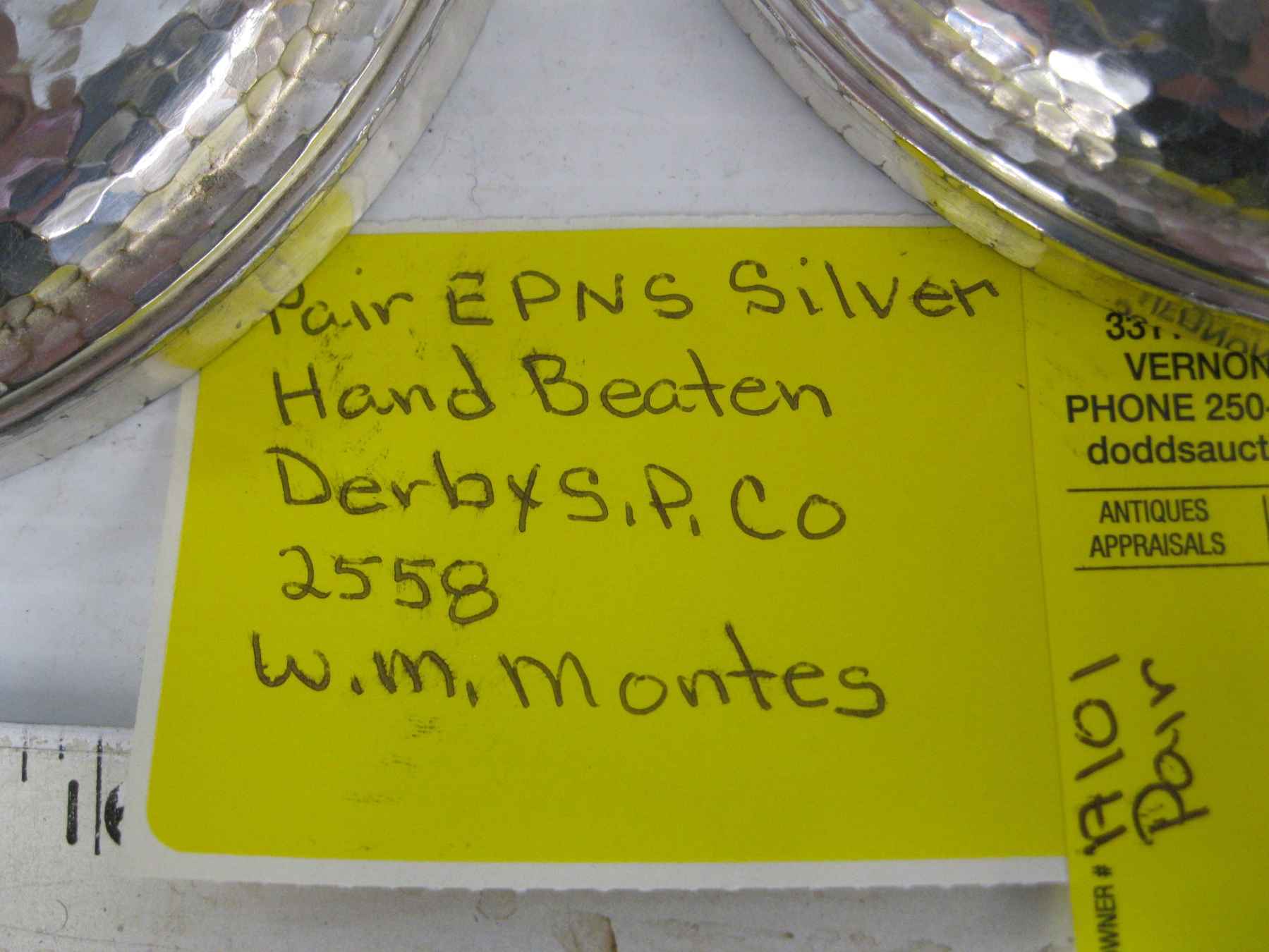 Lot 482 PAIR OF SILVERPLATE HAND BEATEN DERBY CANDLEHOLDERS