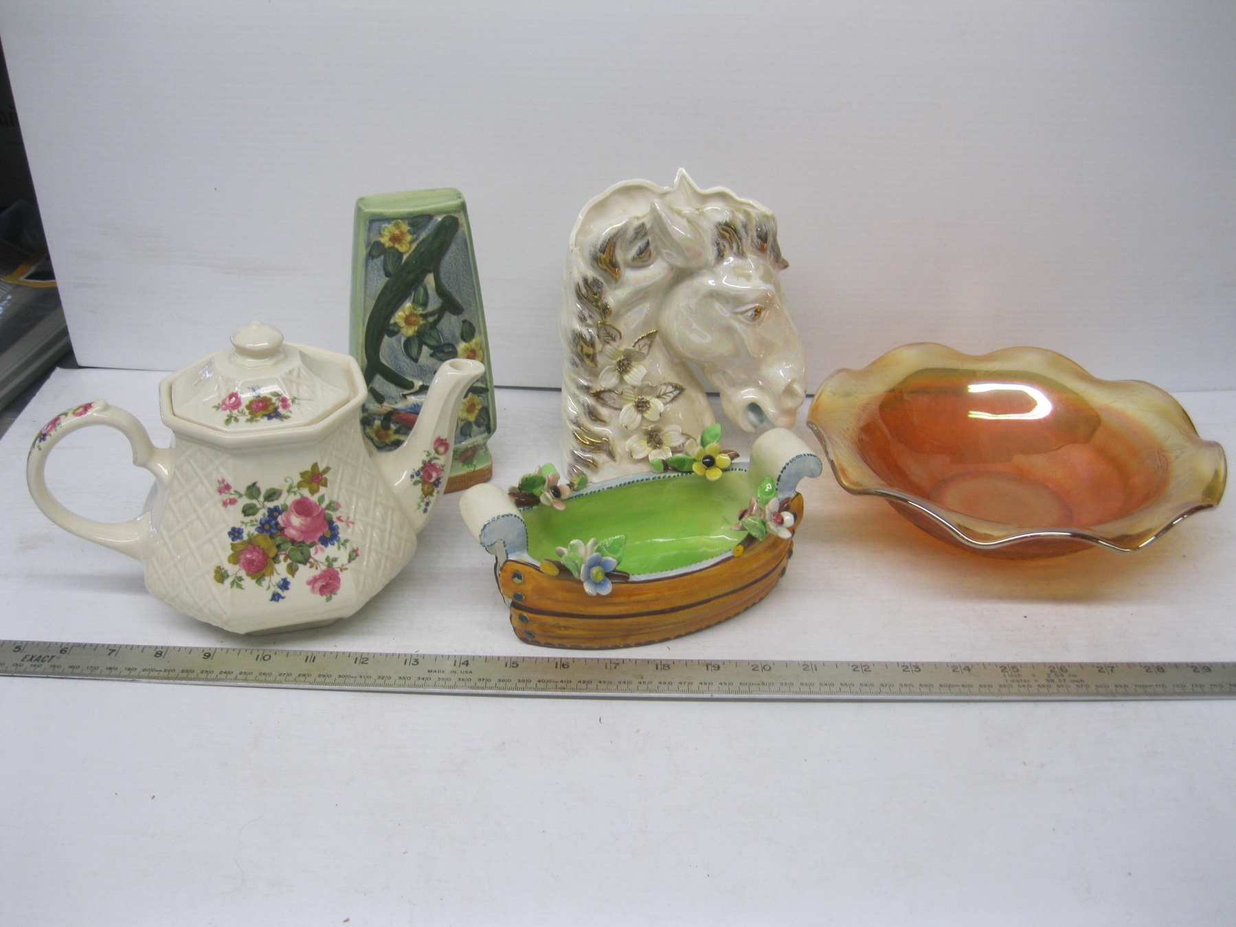 Lot 273 MISC. CHINA TEAPOT, CARNIVAL GLASS BOWL, ETC.