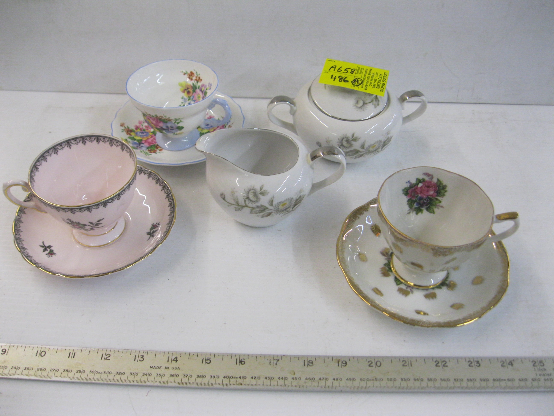 Lot 486A 3 TEACUPS & SAUCERS & A CREAMER & SUGAR BOWL