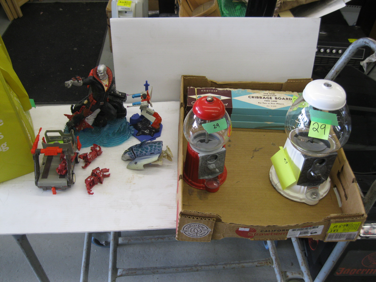 Lot 383 ZOTEKI & BEAST WARS TRANSFORMERS, CRIBBAGE BOARDS W/PEGS & 2 METAL GUMBALL MACHINES