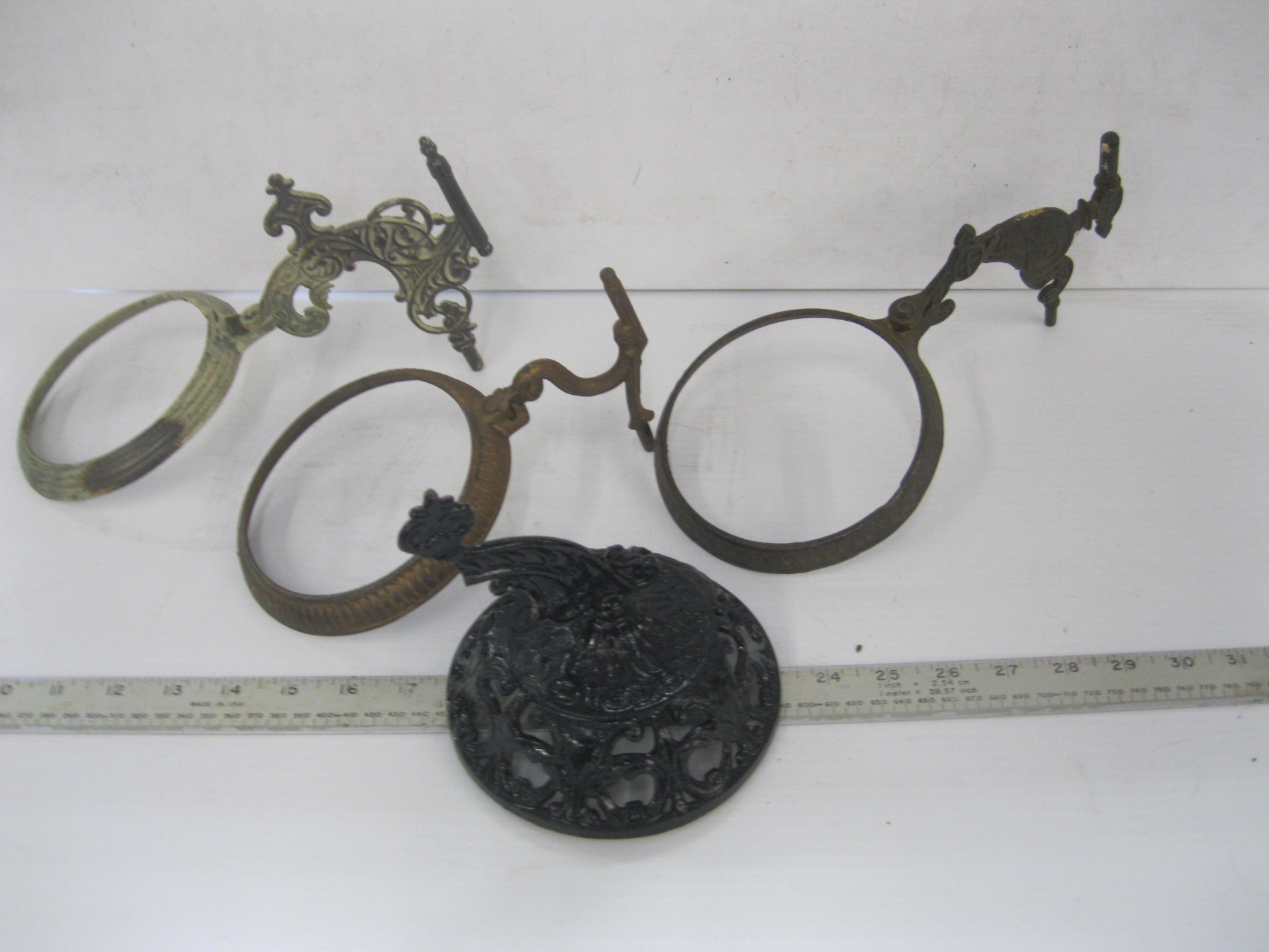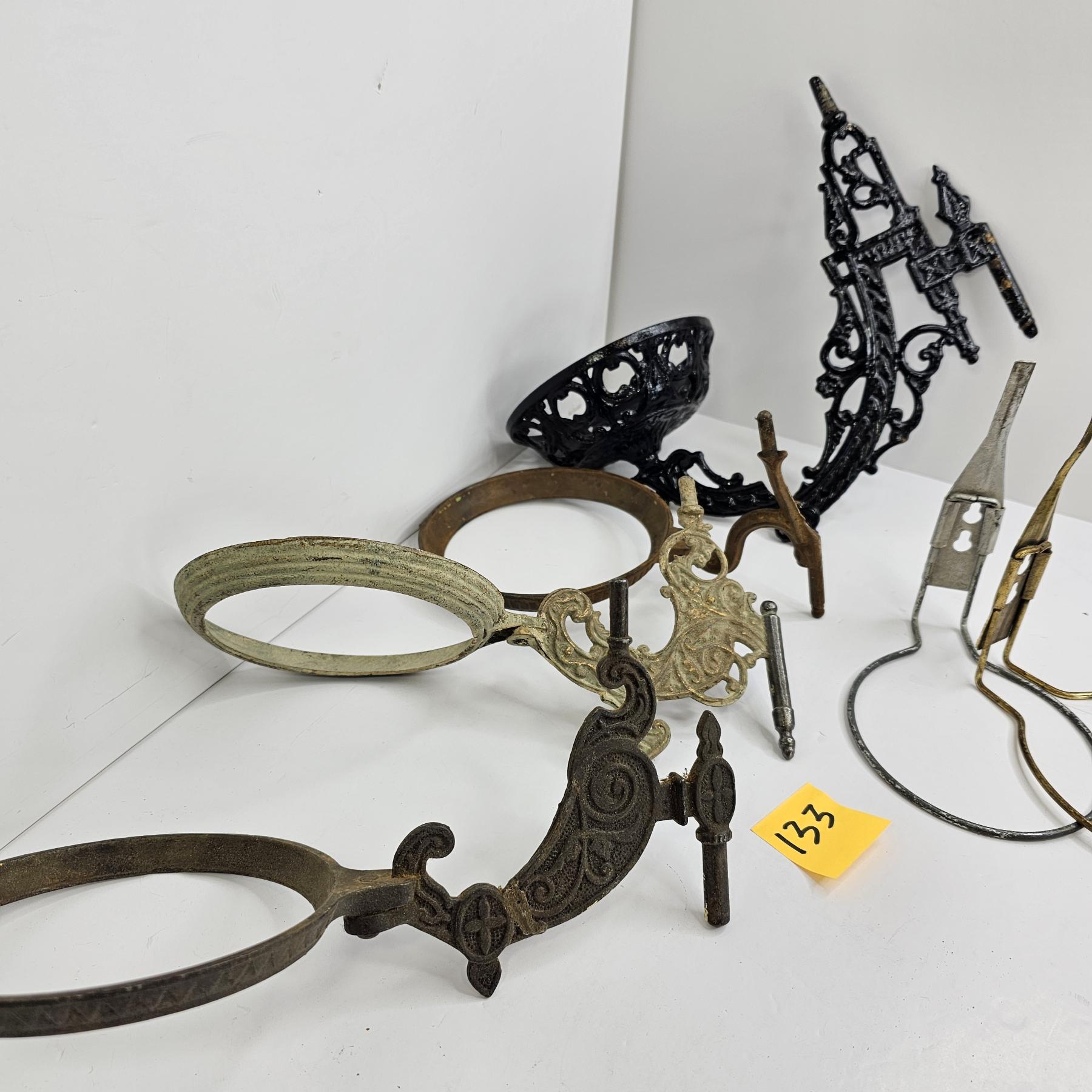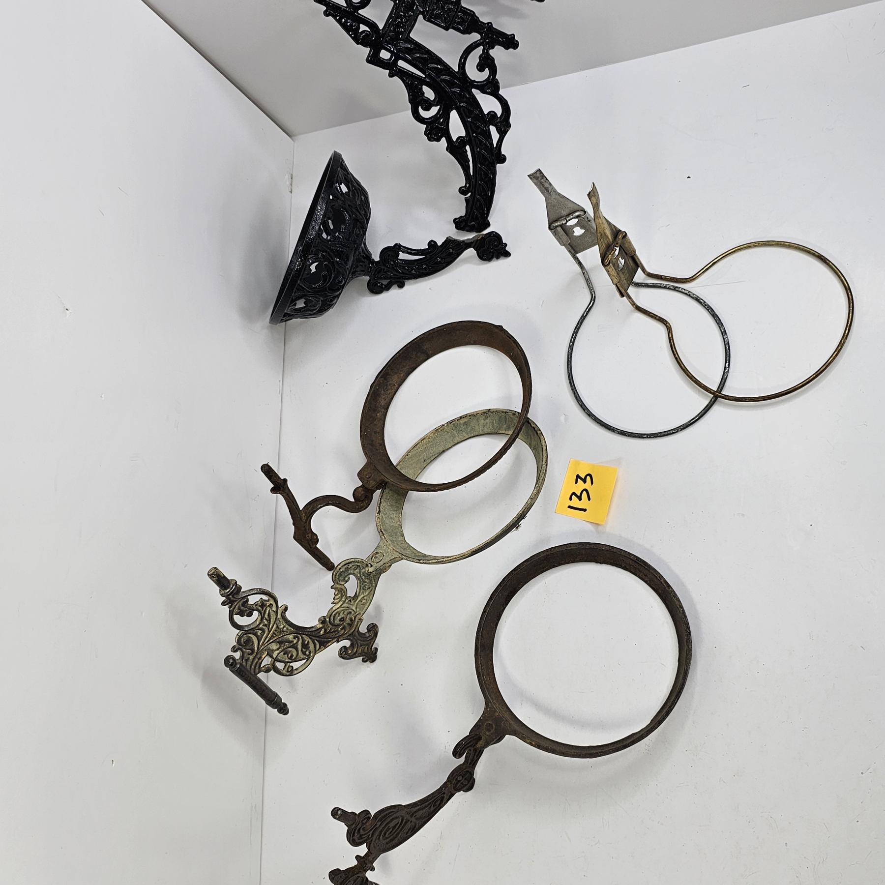 Lot 411 HORSE BITS, HORSESHOE S&P HOLDER & OOIL LANTERN WALL MOUNT PARTS - 1 NEEDS REPAIR