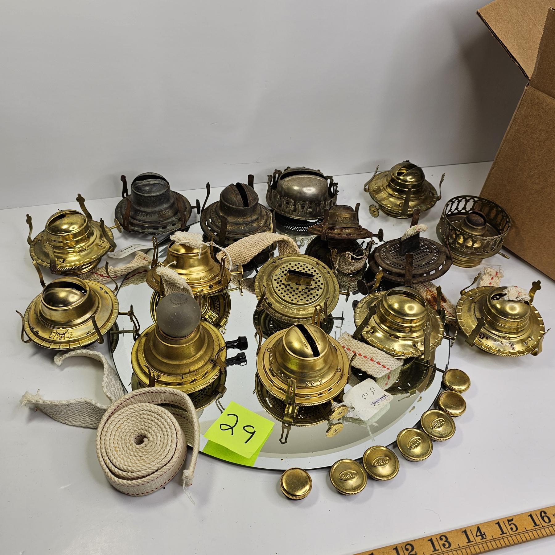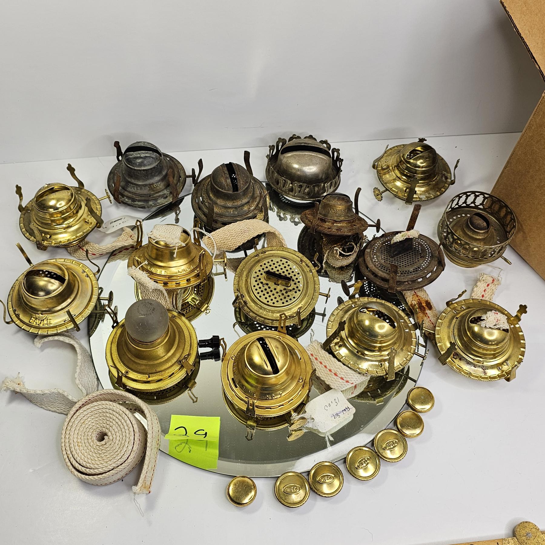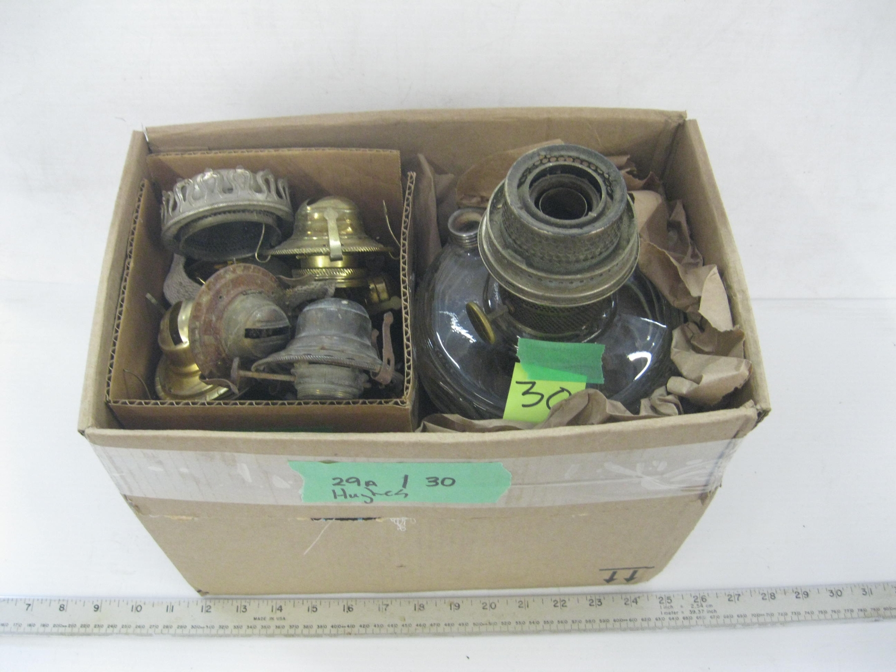 Lot 412 REPLACEMENT LAMP BURNERS, WICKS, PLUGS & ALADDIN GLASS LAMP W/BURNER