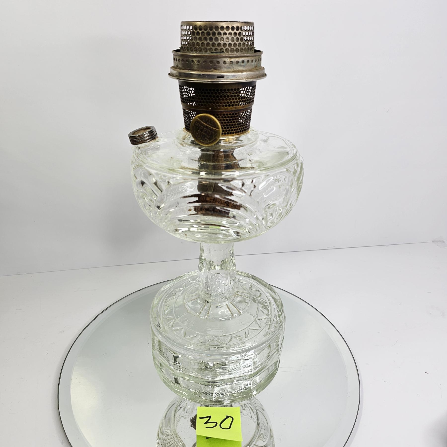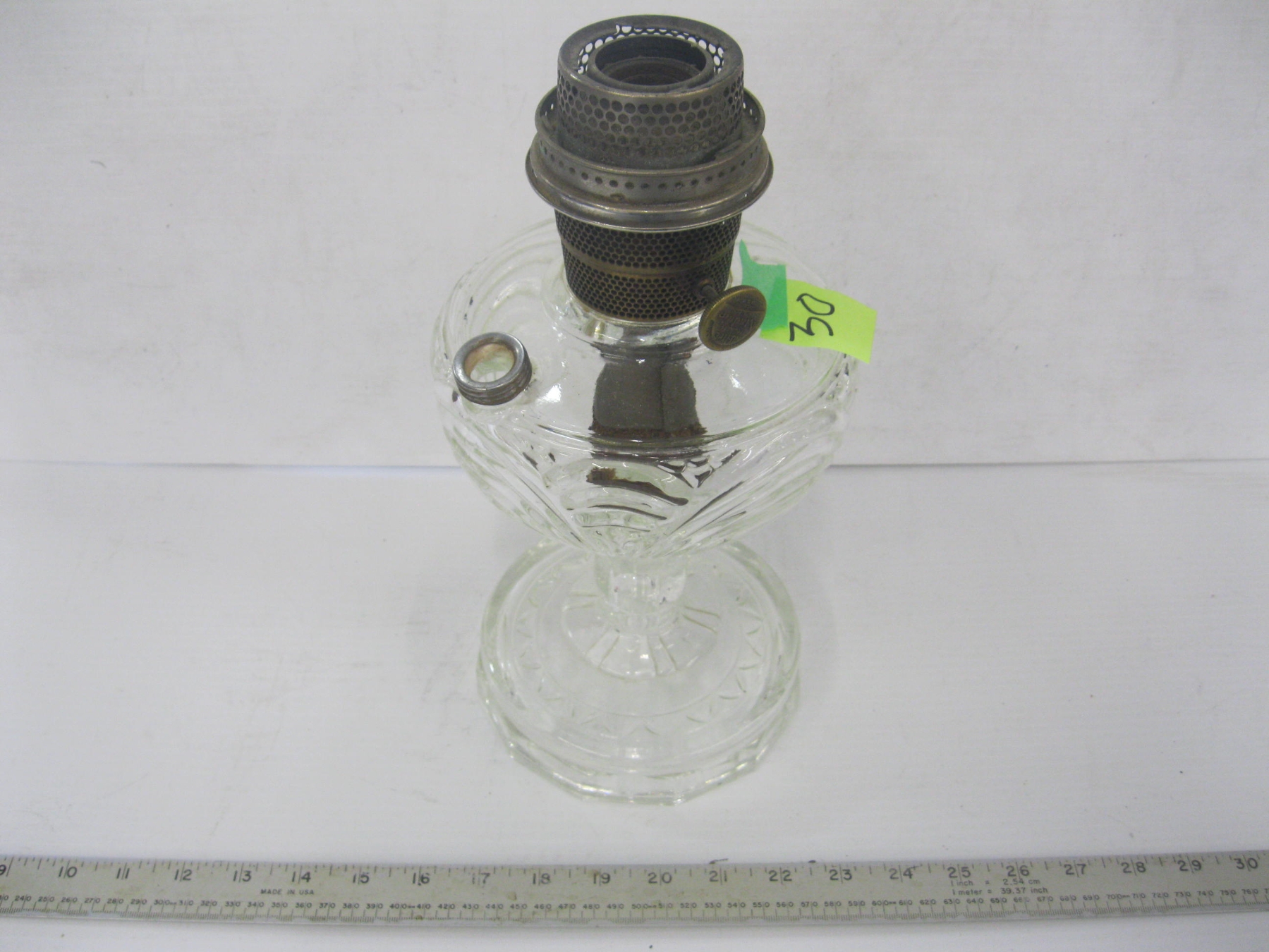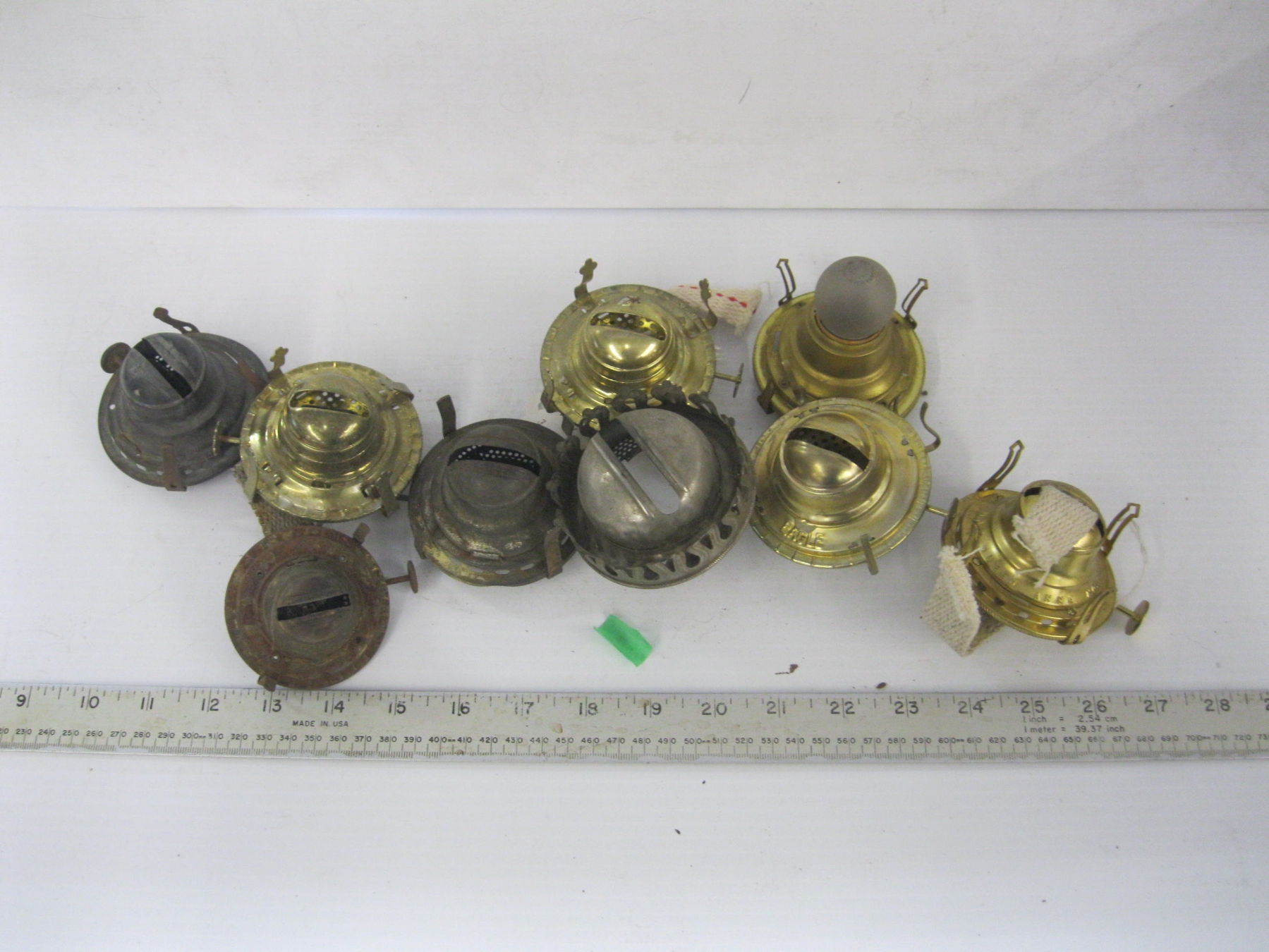 Lot 412 REPLACEMENT LAMP BURNERS, WICKS, PLUGS & ALADDIN GLASS LAMP W/BURNER