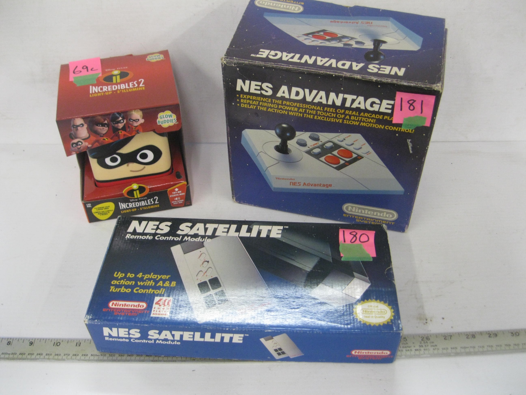Lot 423 3 DISNEY GLOW BUDDIES, NINTENDO NES SATELLITE & NES ADVANTAGE
