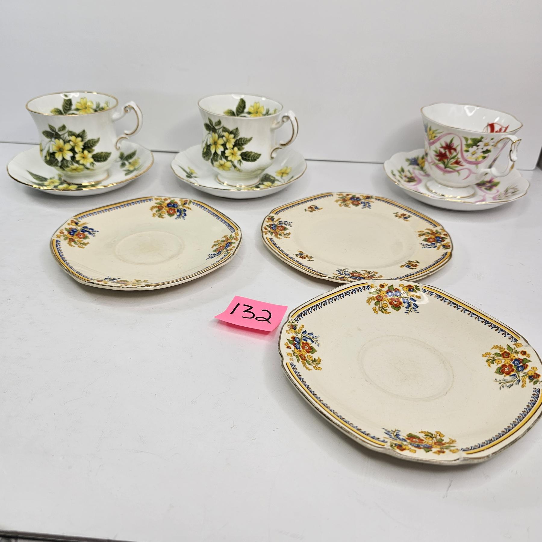 Lot 424 2 PARAGON TEACUP SETS, R0YAL ALBERT, ROYAL CAMERUNIAN & 11 TEACUP/SAUCER SETS