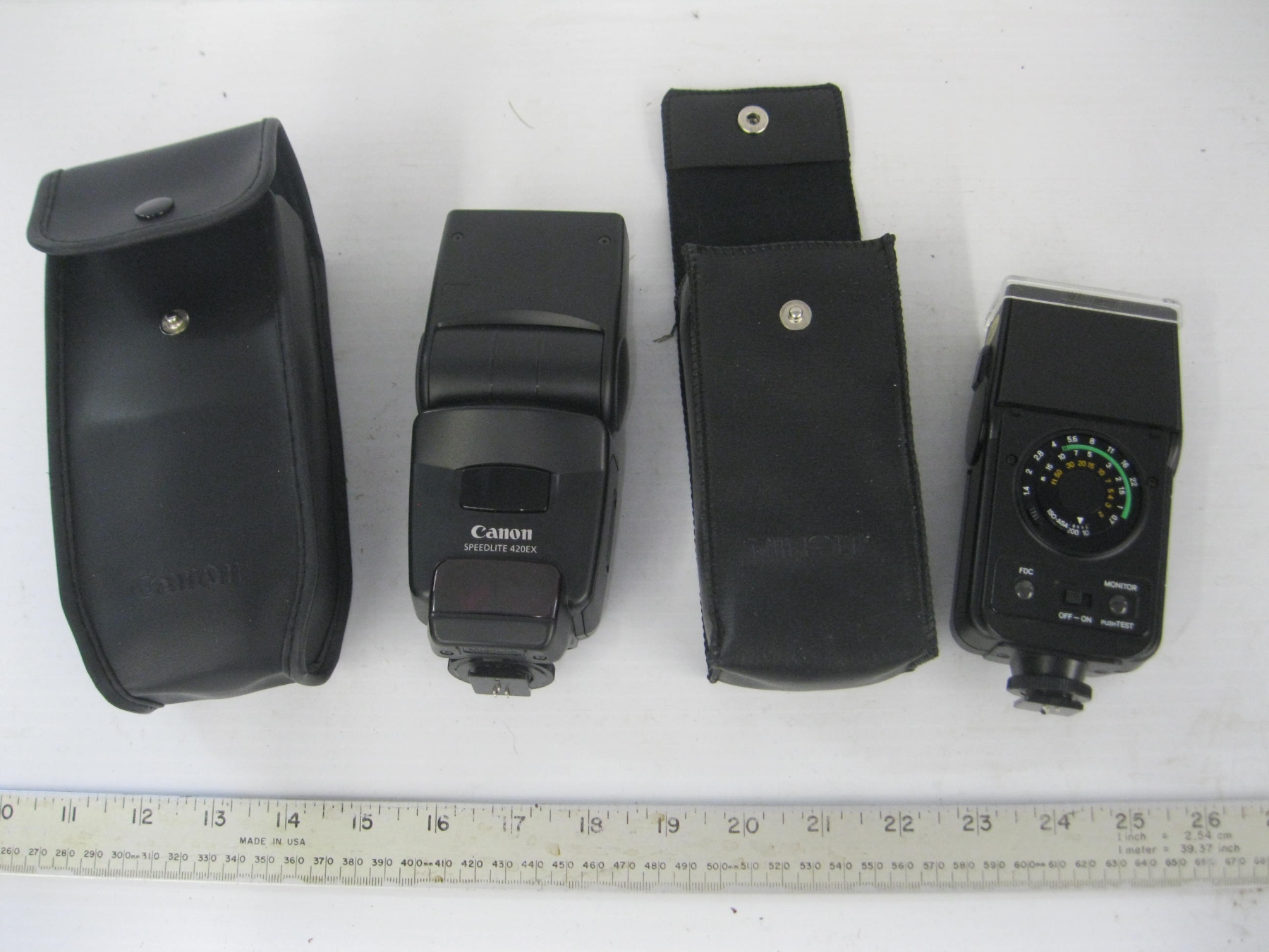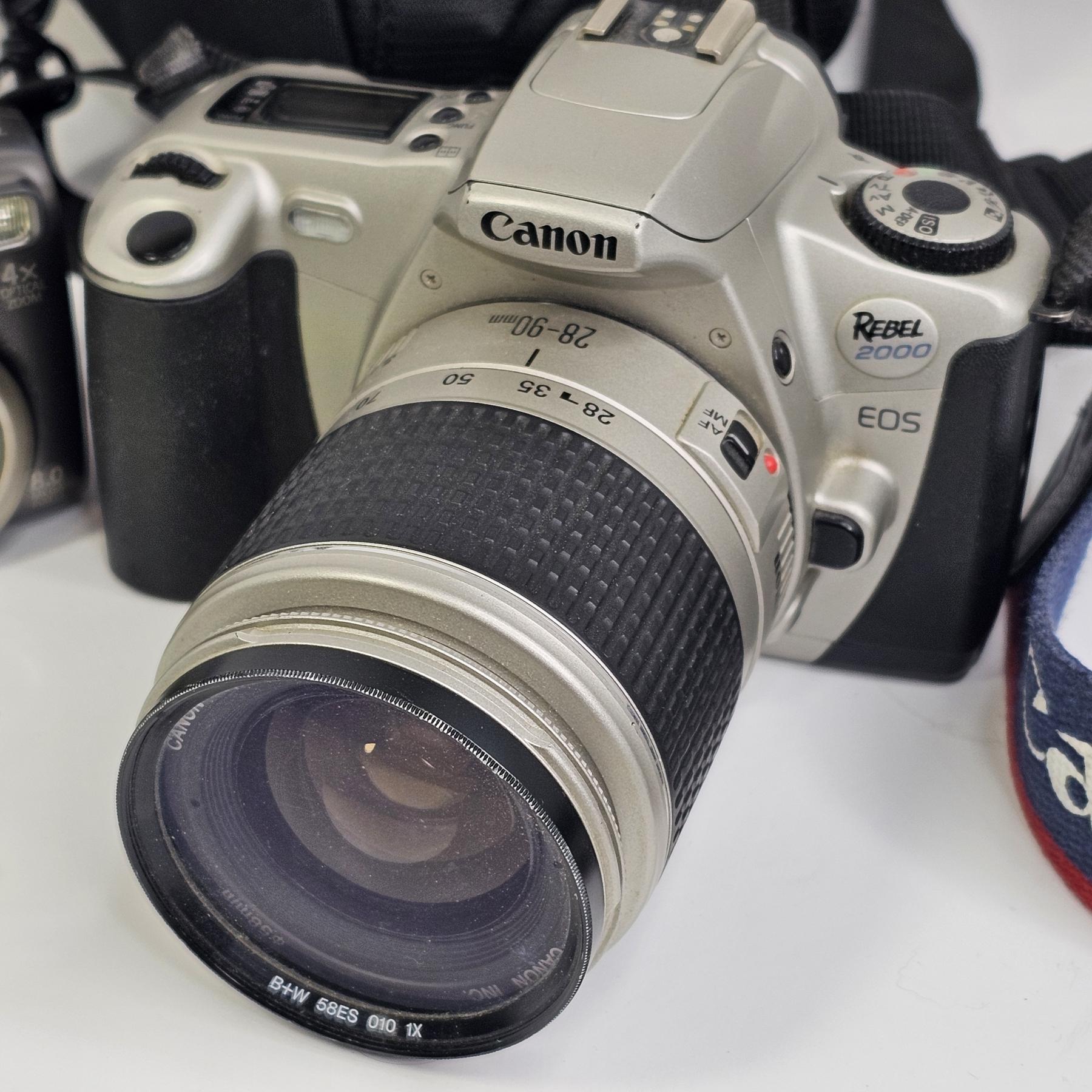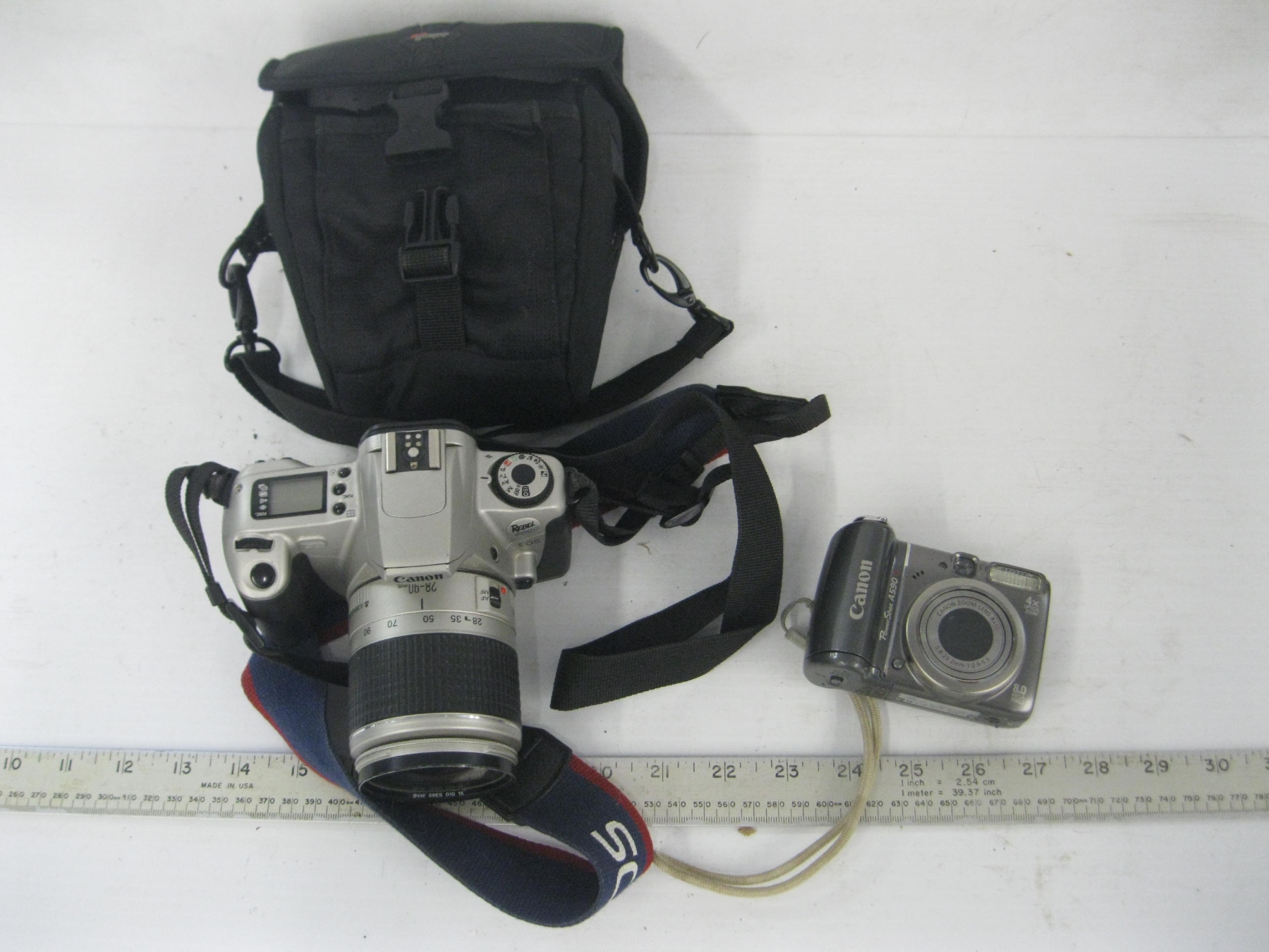 Lot 439 2 CANON CAMERAS & REBEL 2000, 3 DIGITAL CAMERAS (NO CHARGERS), CANON SPEEDLITE & MINOLTA AUTO