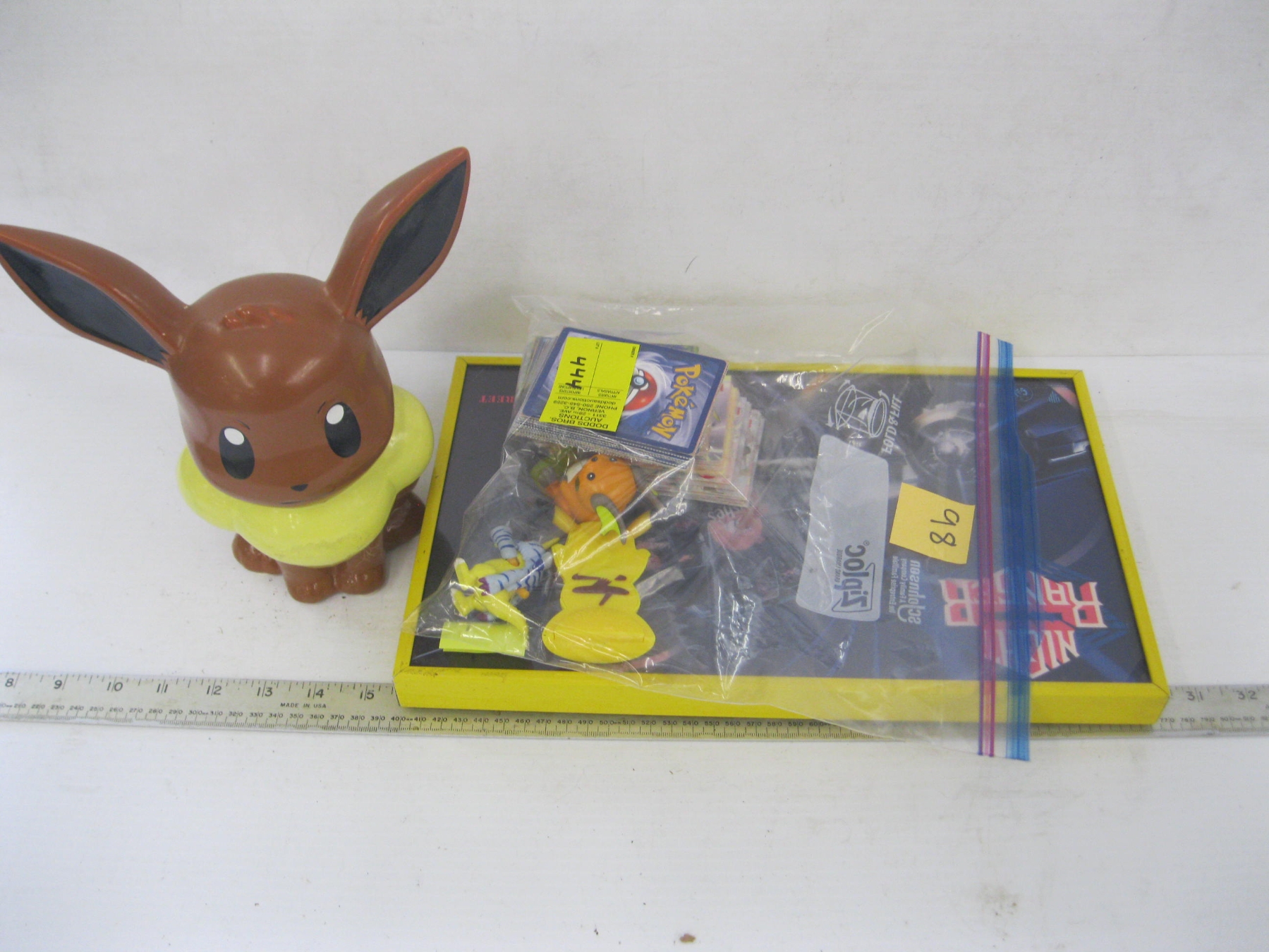 Lot 444 AUTOGRAPHED NIGHT RANGER POSTER, POKEMAN CARDS, COIN BANK & ACTION FIGURES