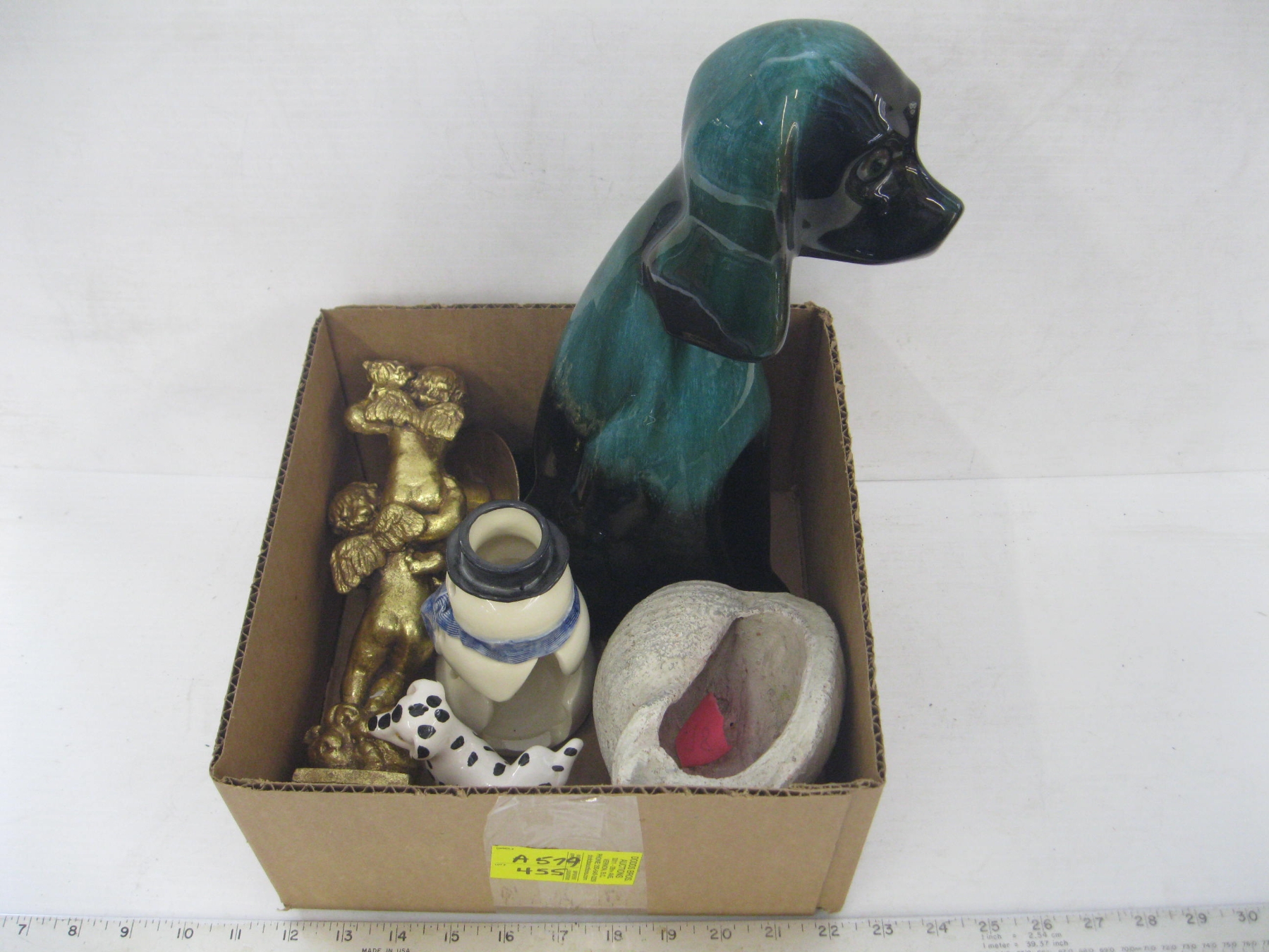 Lot 455 BLUE MOUNTAIN POTTERY DOG, CHERUB, PLANTER