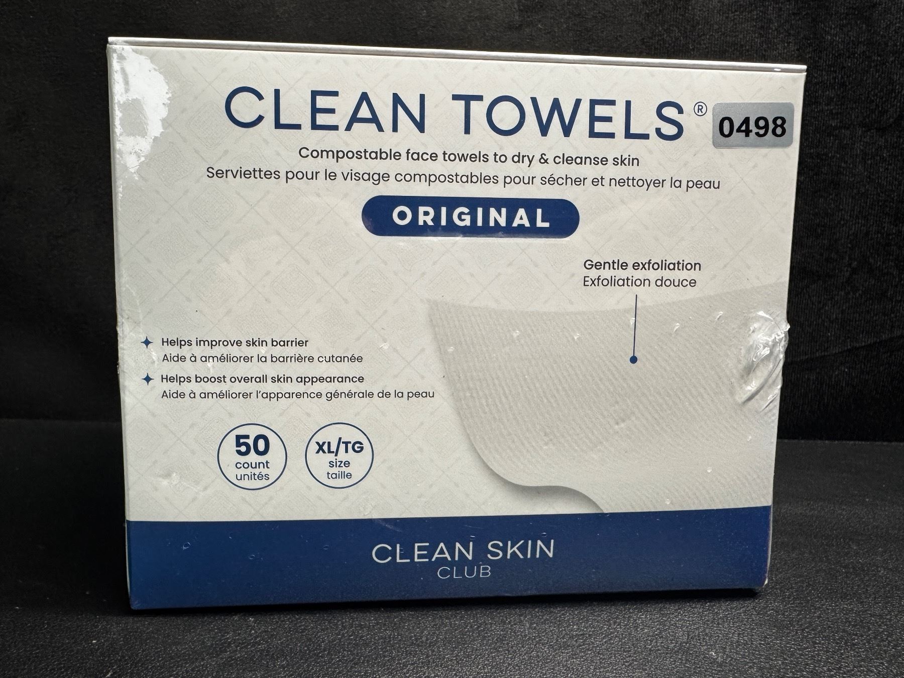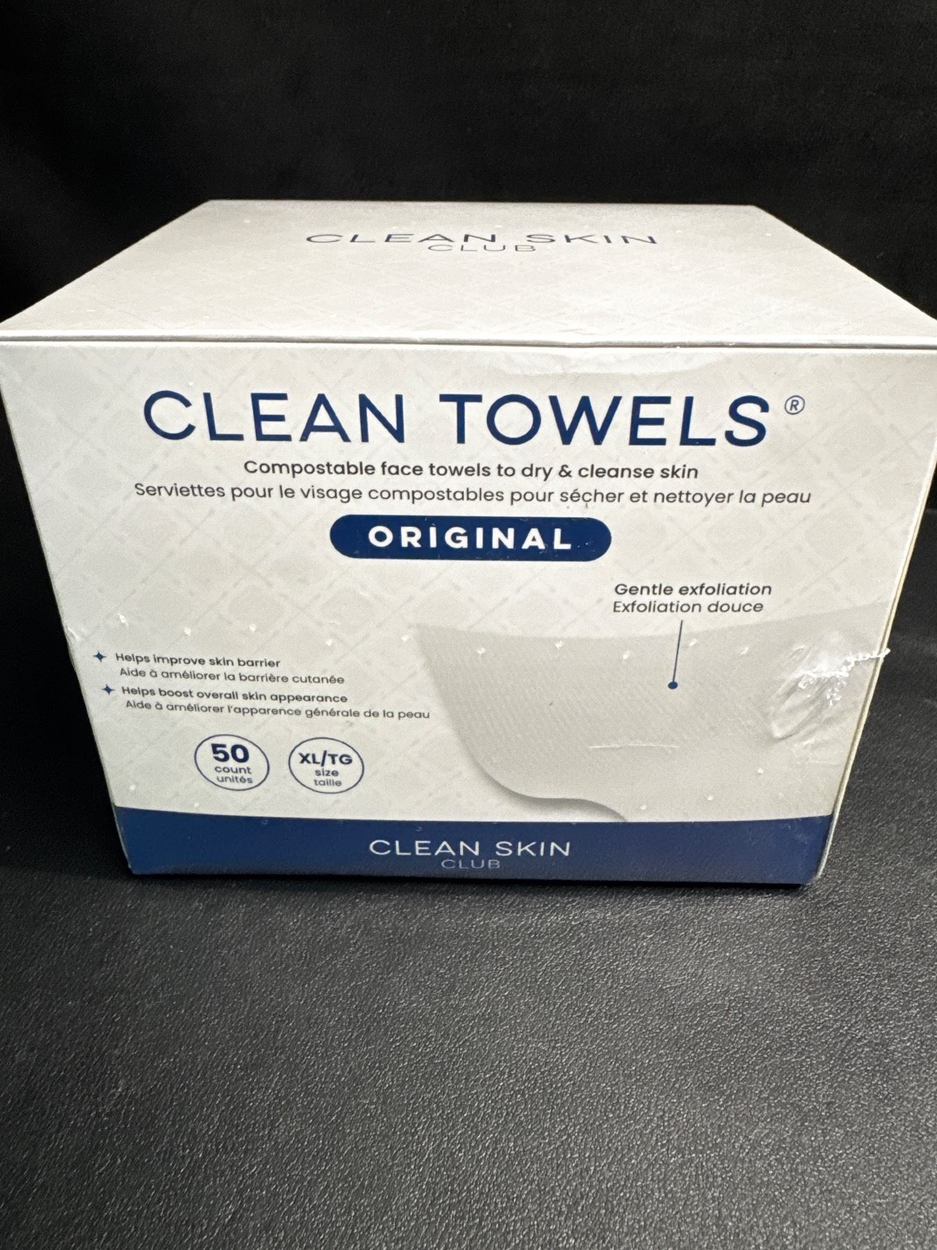 Lot 498 50PC Box of XL Clean Towels; Dermatologist-Approved Compostable Face Towels - Ultra Soft - New