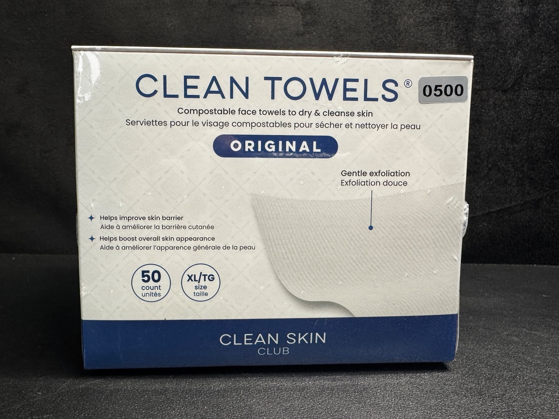 Lot 500 50PC Box of XL Clean Towels; Dermatologist-Approved Compostable Face Towels - Ultra Soft - New
