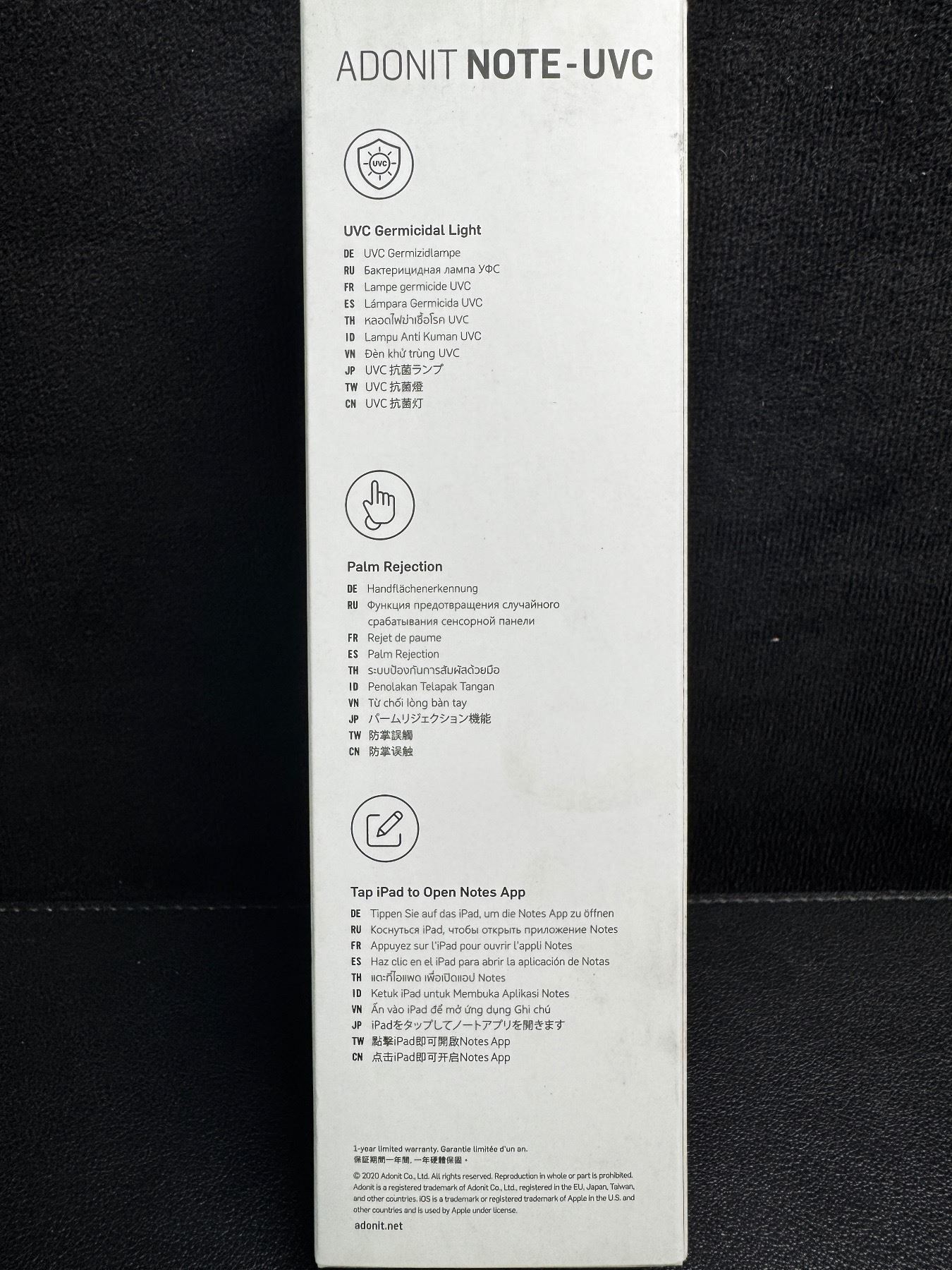 Lot 504 Adonit Note-UVC iPad Stylus Pen with LED UVC Germicidal Sanitization Lights - New