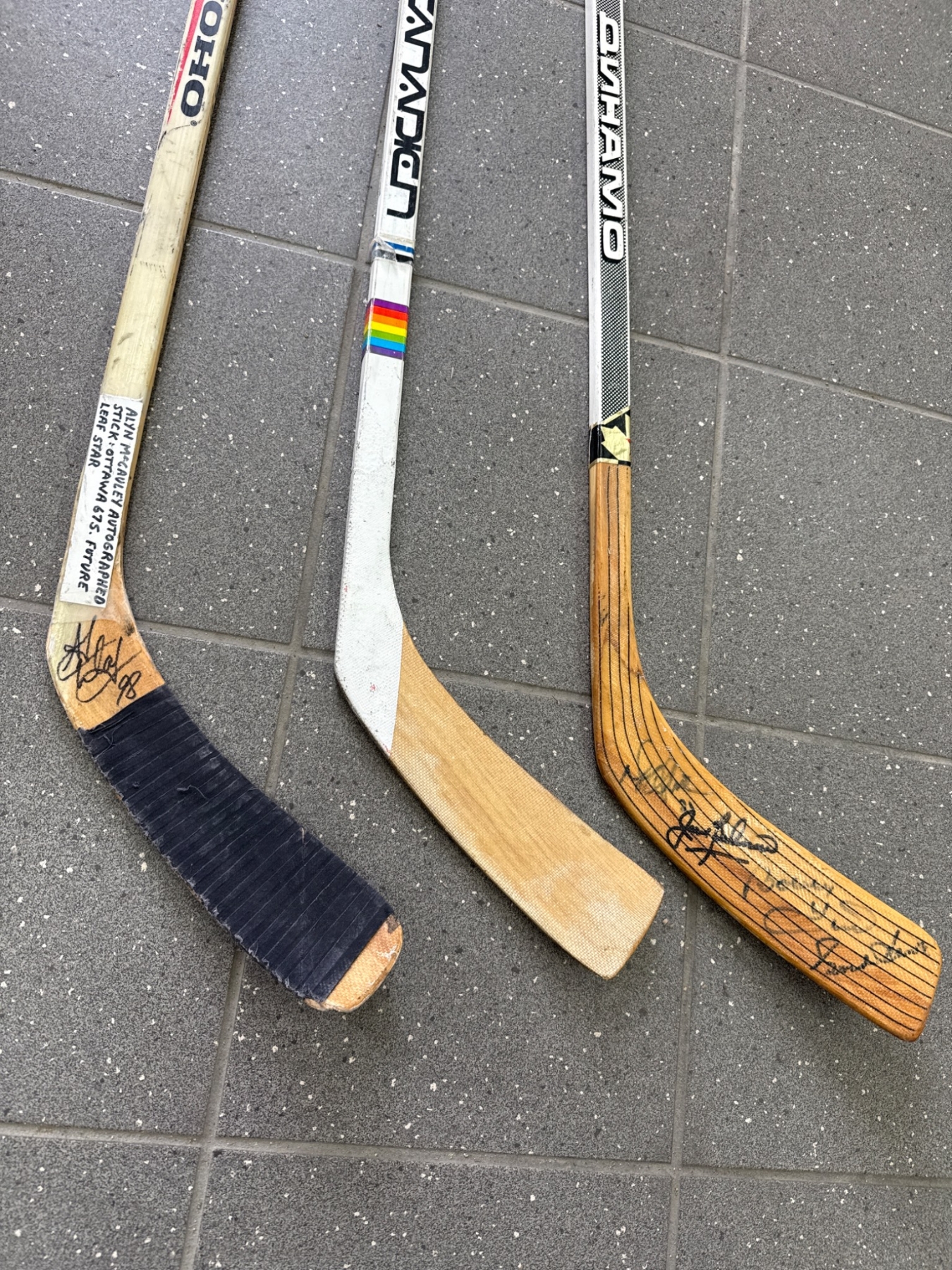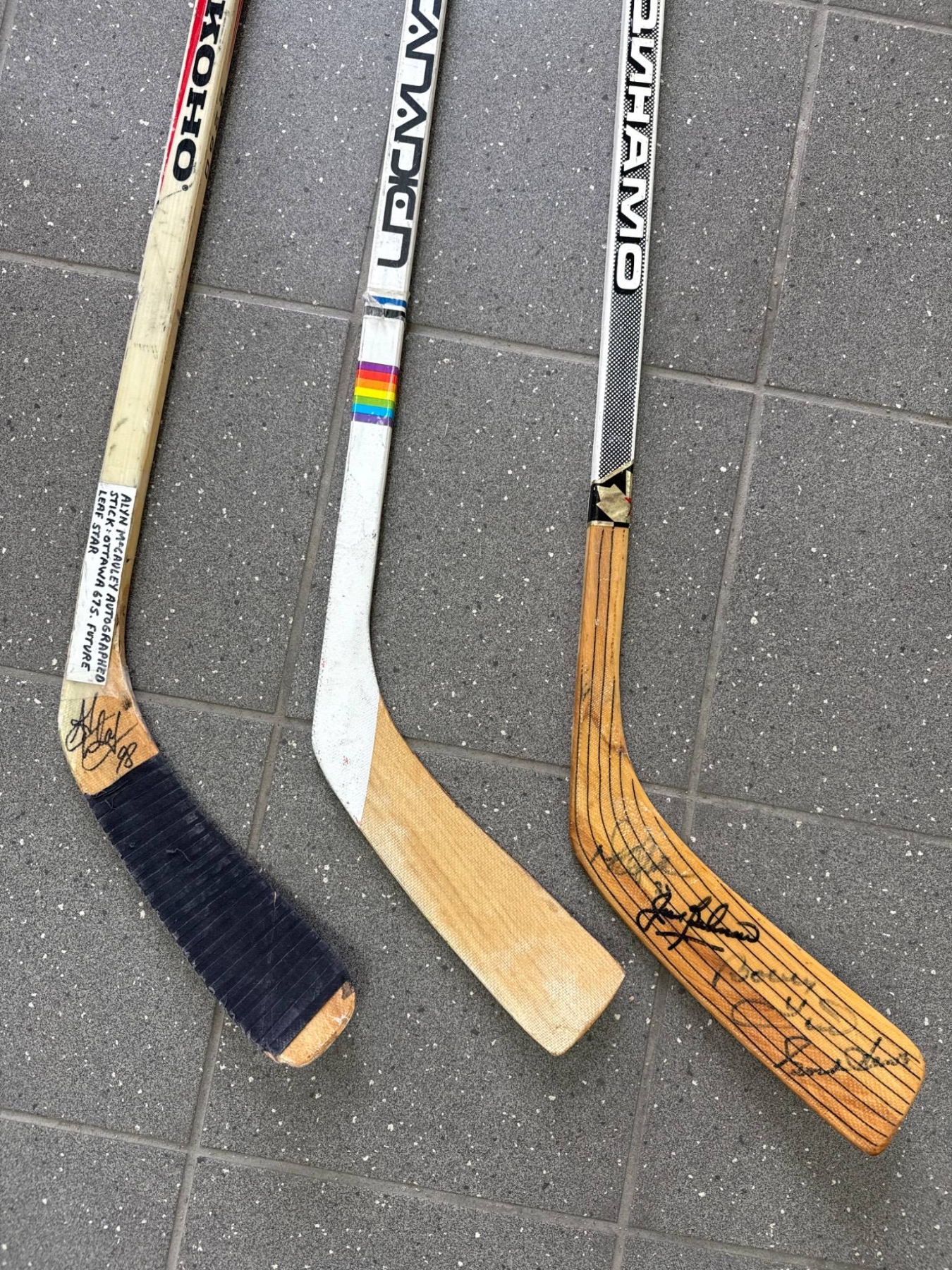 Lot 15 Three Signed Hockey Sticks Alen McCauley Toronto Maple Leafs with Wooden Blades