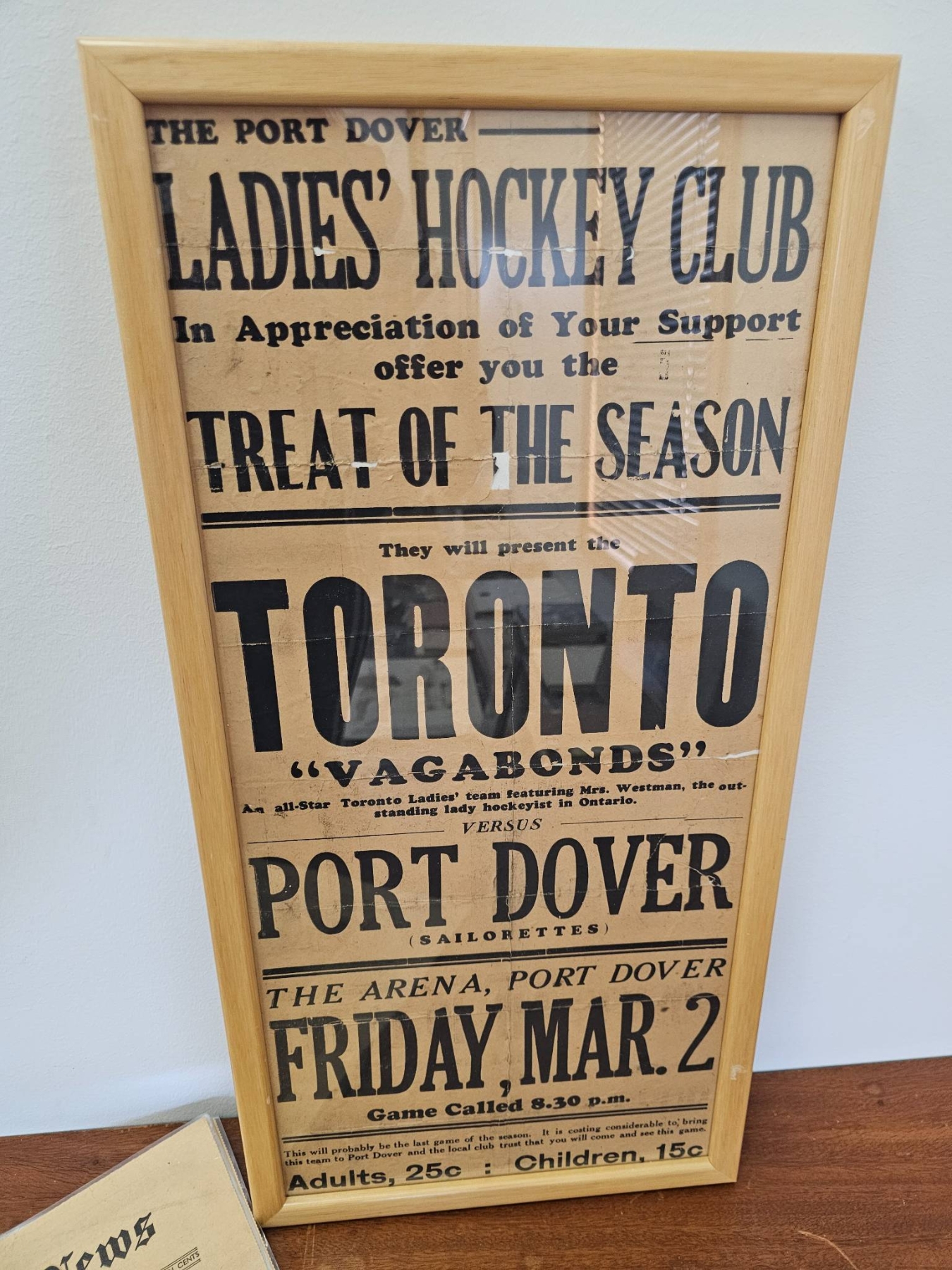 Lot 80 Framed Antique Ladies Port Dover Hockey Club Poster and Antique Hockey News Collection