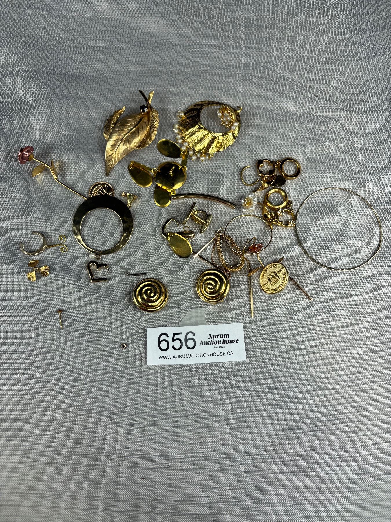 Lot 656 Misc Gold Plated Jewelery Items As Is