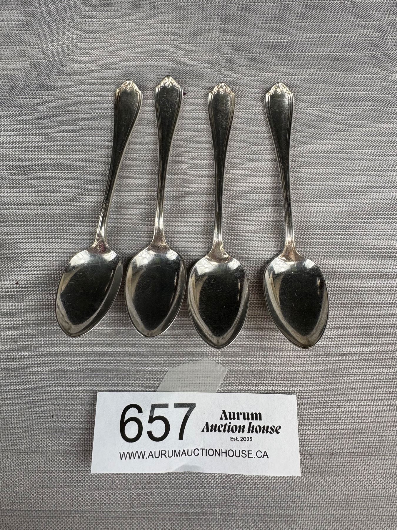 Lot 657 4 Matching Silver Tea Spoons, Roger & Bro AI