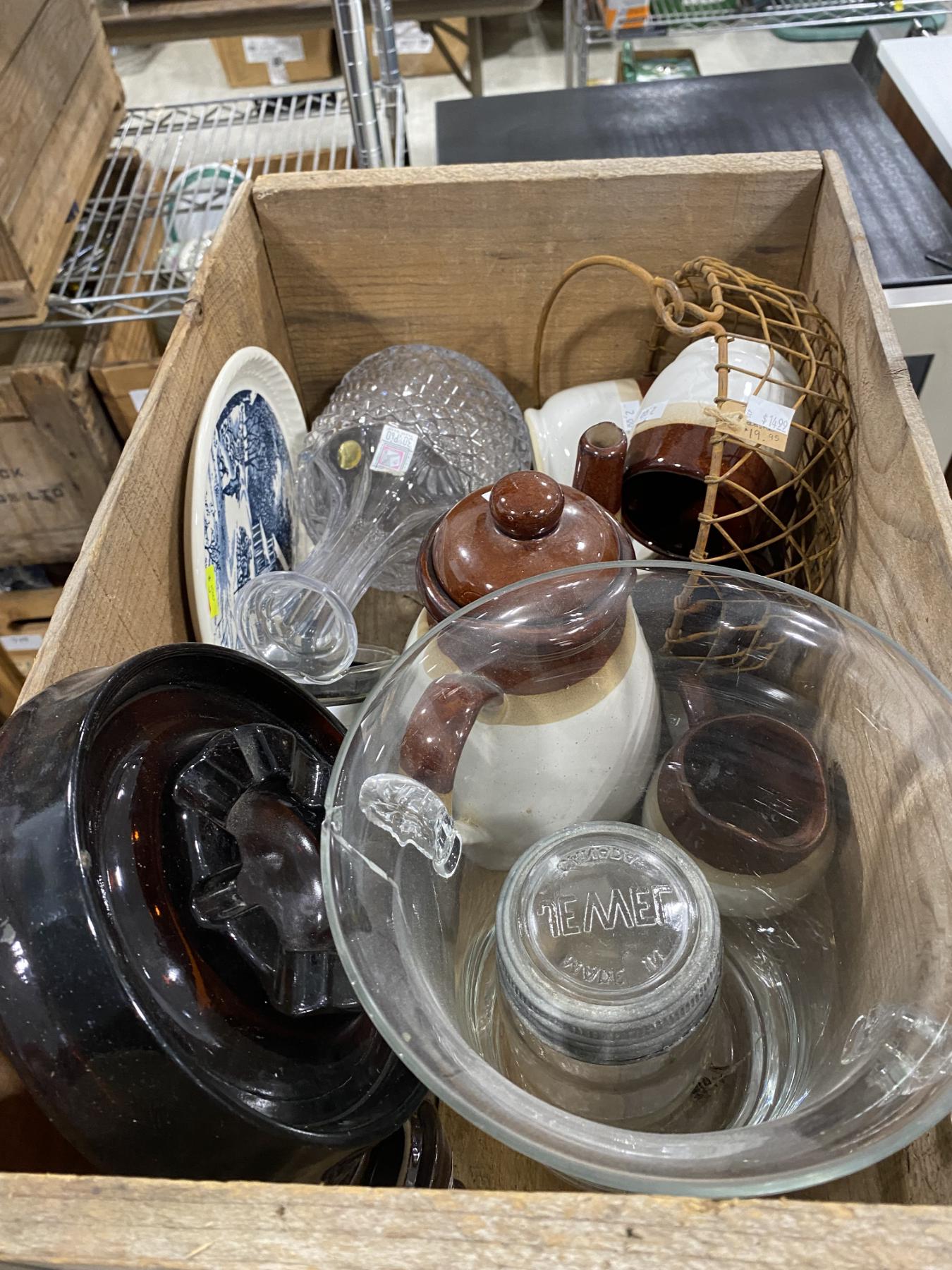 Lot 743 WOODEN BOX LOT OF ASSORTED GLASS
