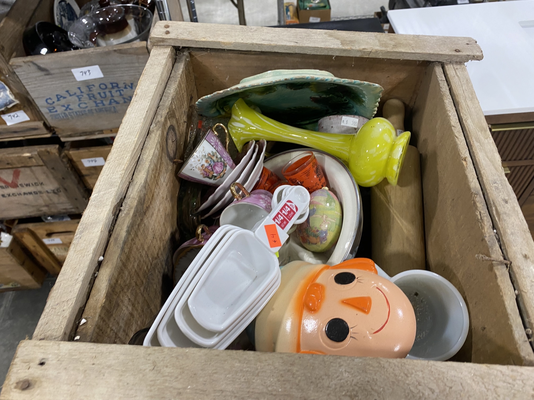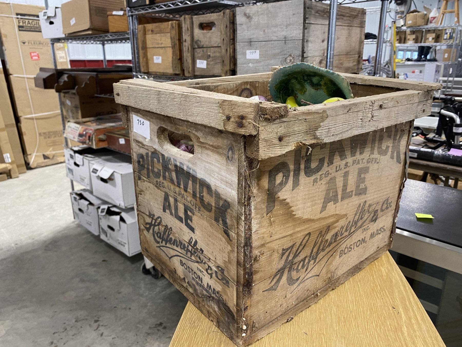 Lot 750 WOODEN BOX LOT OF ASSORTED GLASS