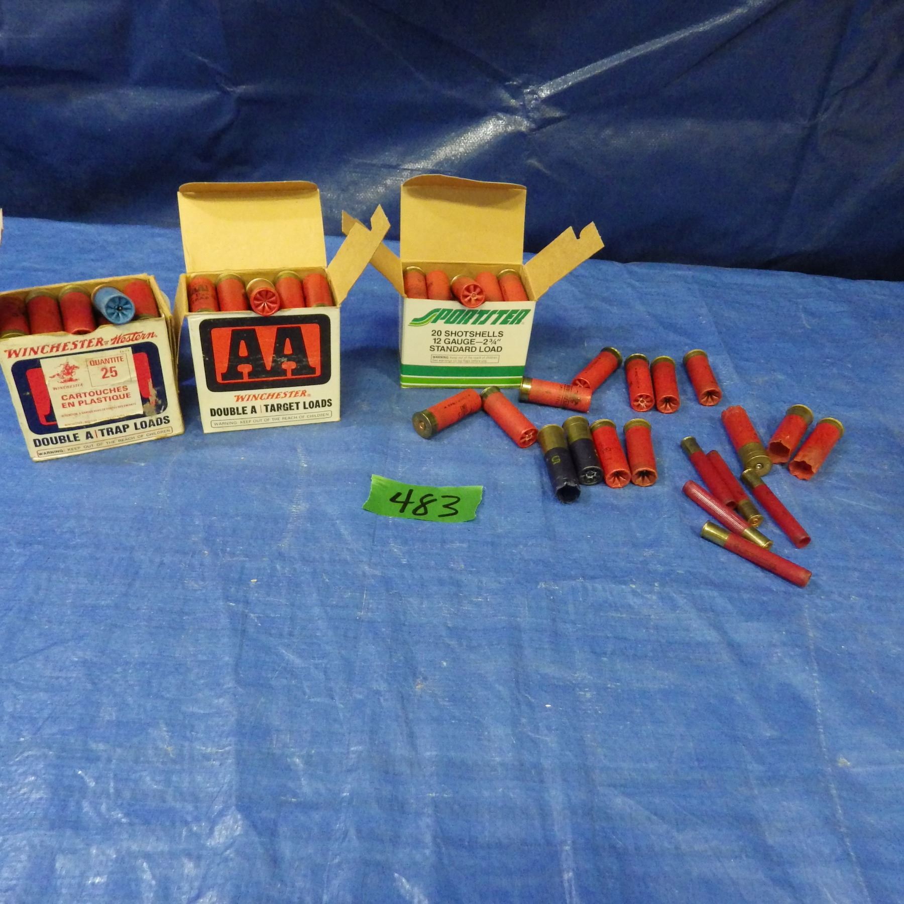 Lot 483 lot of 12 gauge ammunition and hulls some reloads