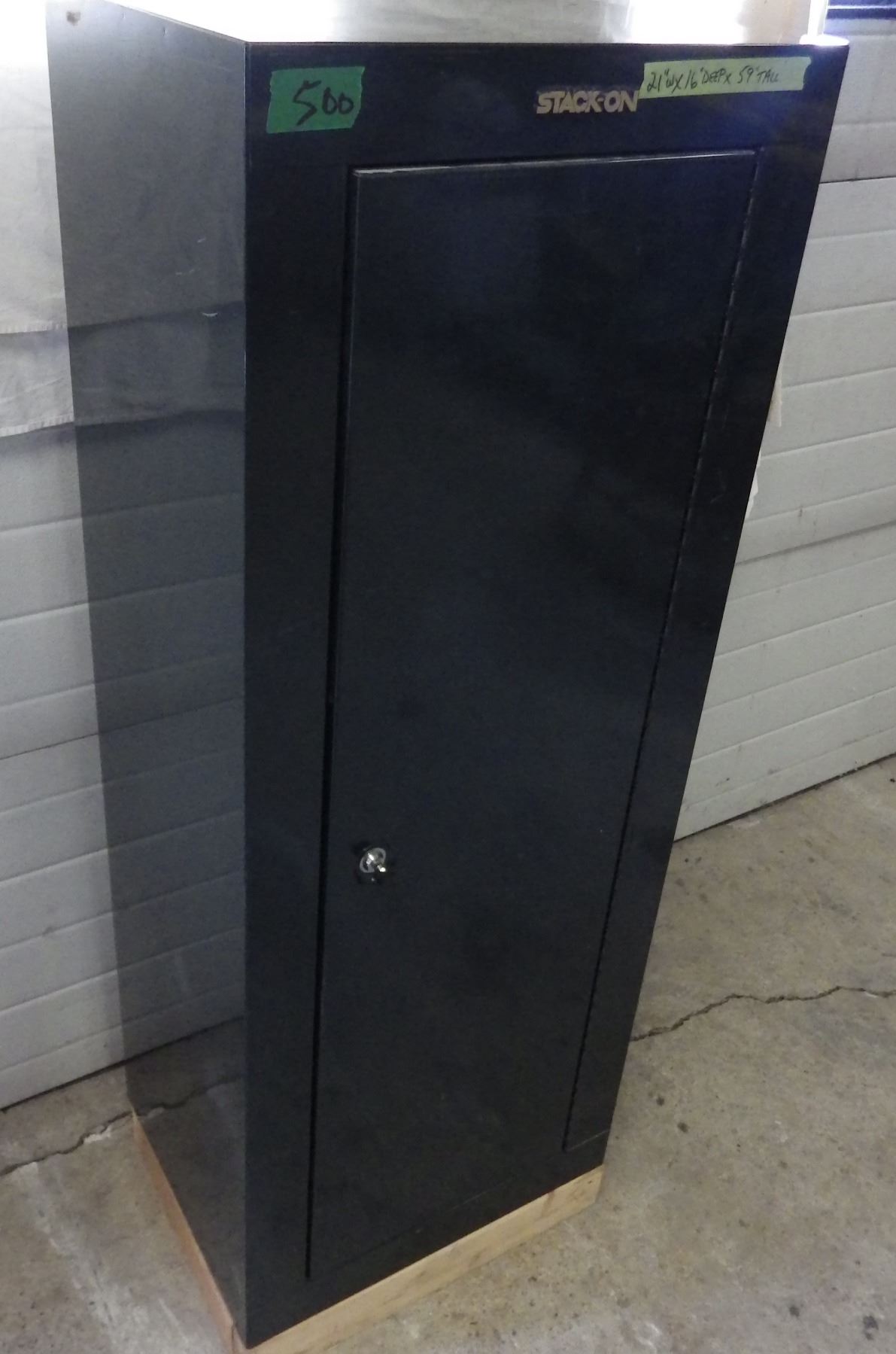 Lot 500 Stack On gun cabinet with one key - mounted on 2X4 base