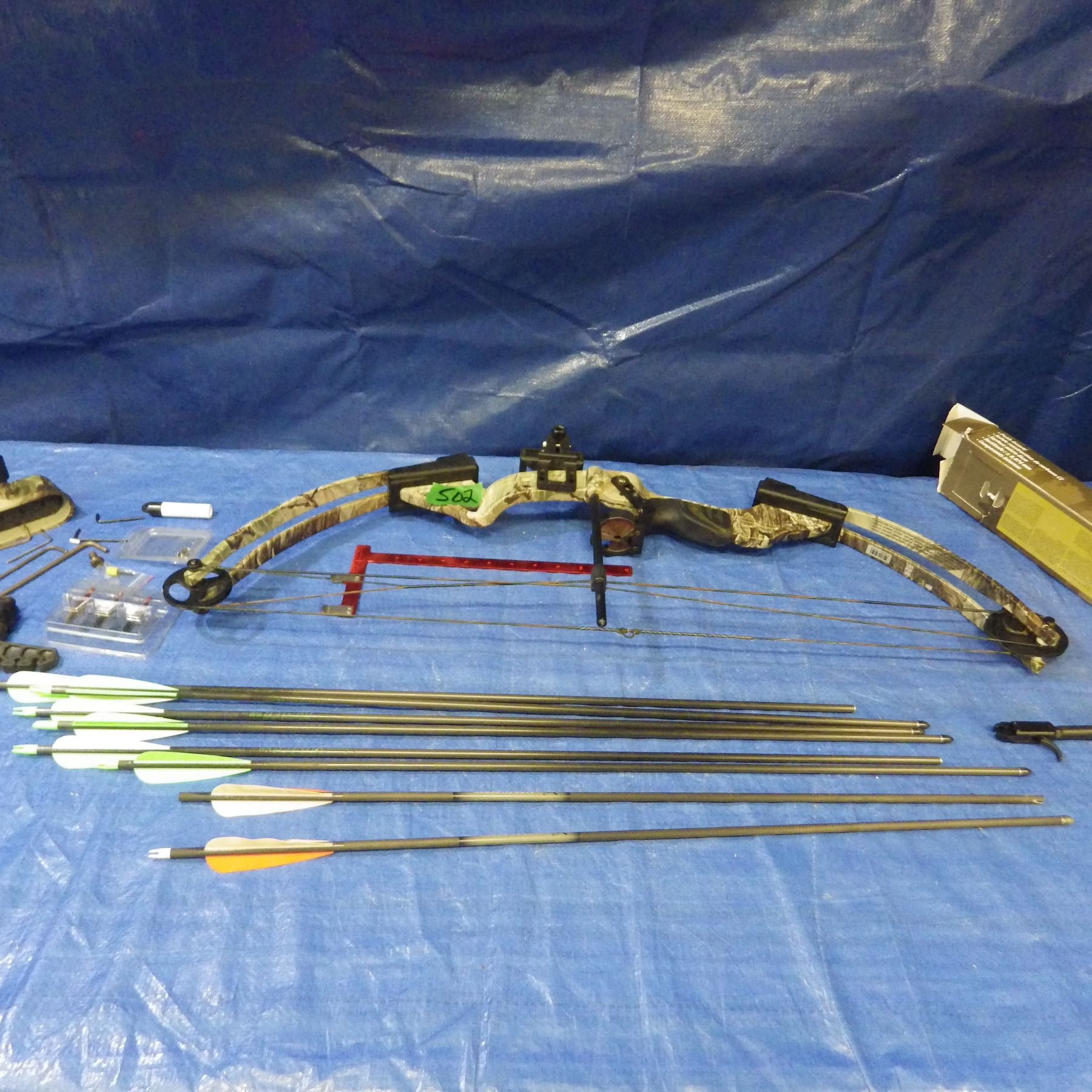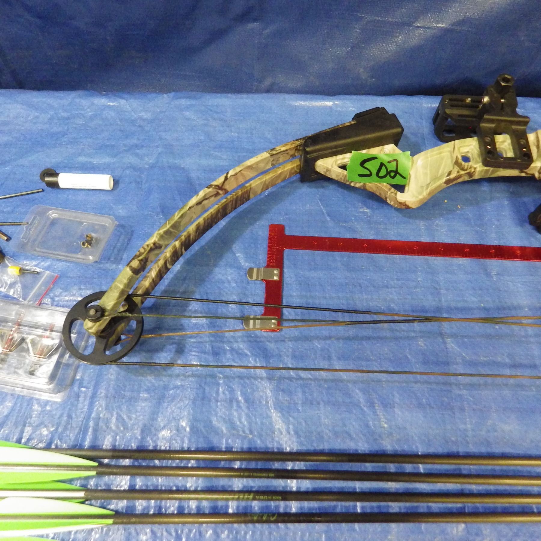 Lot 502 Fred Bear compound bow with accessories