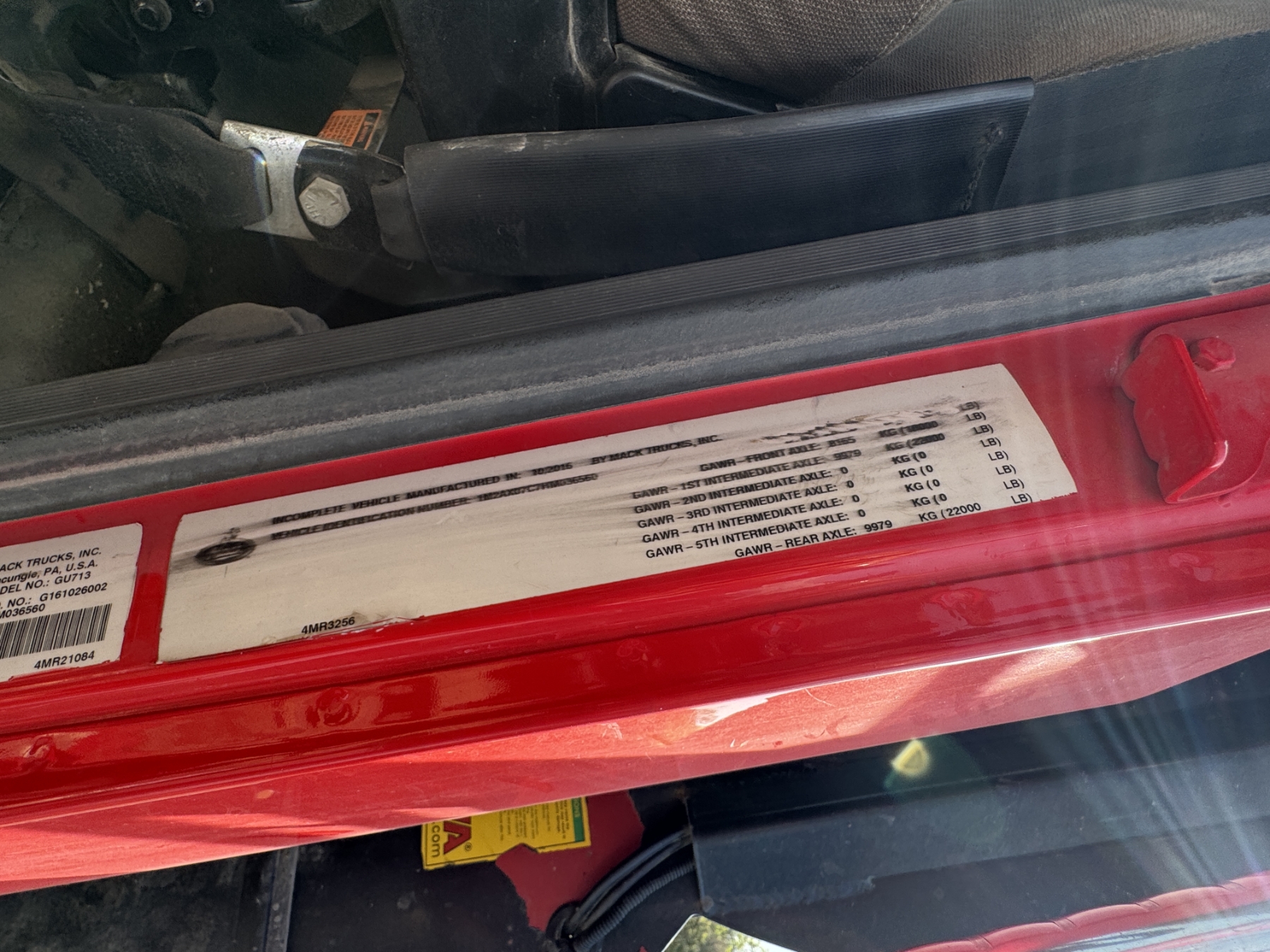 Tri Axle, 455 HP Mack MP8 engine, Allison A/T, 46K rears, 20K front, 16' Hard Ox body, 11R24.5 rear tires, 385/65R22.5 front tires