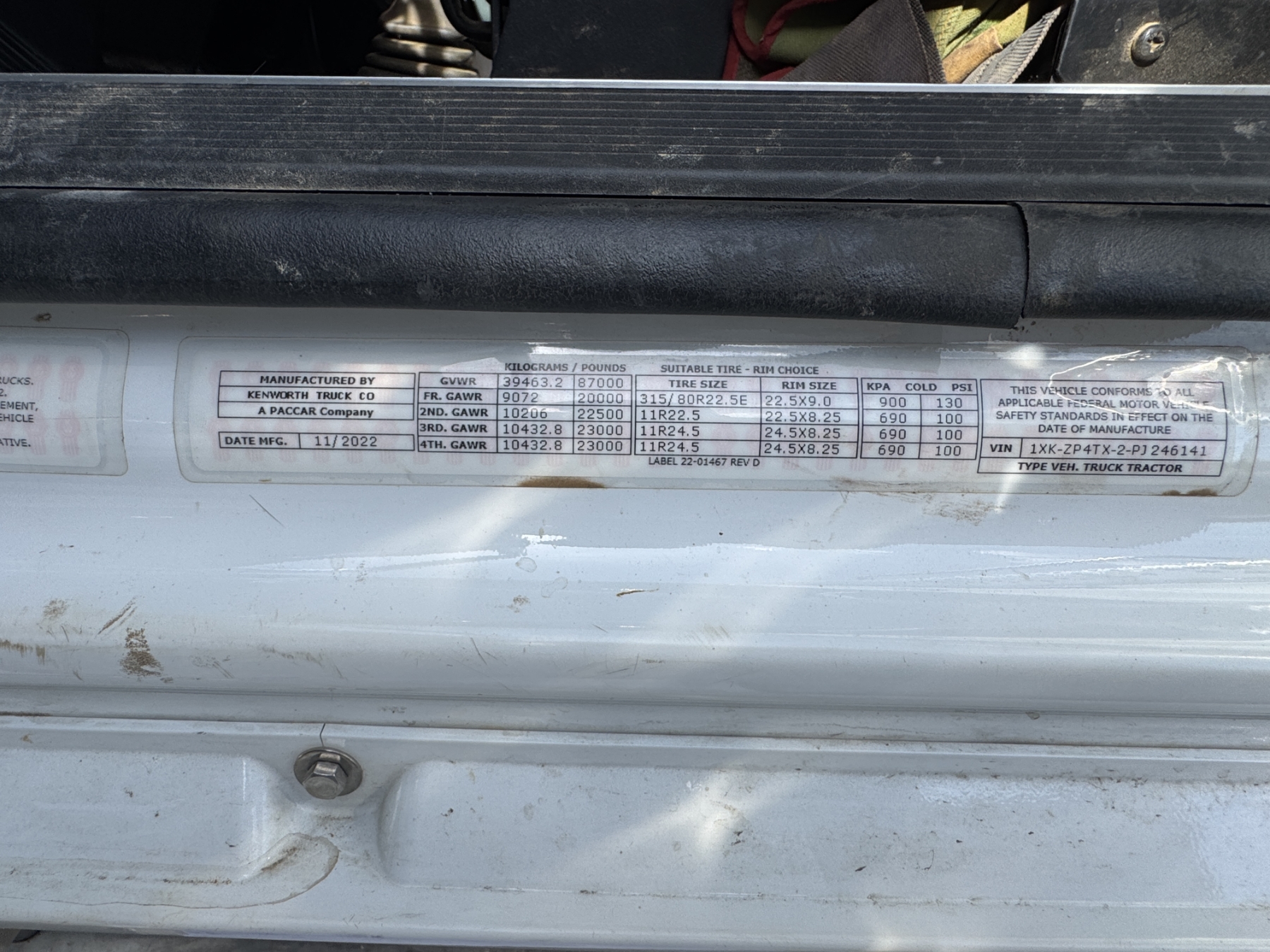 Vehicle ID Number: 1XKZP4TX2PJ246141
