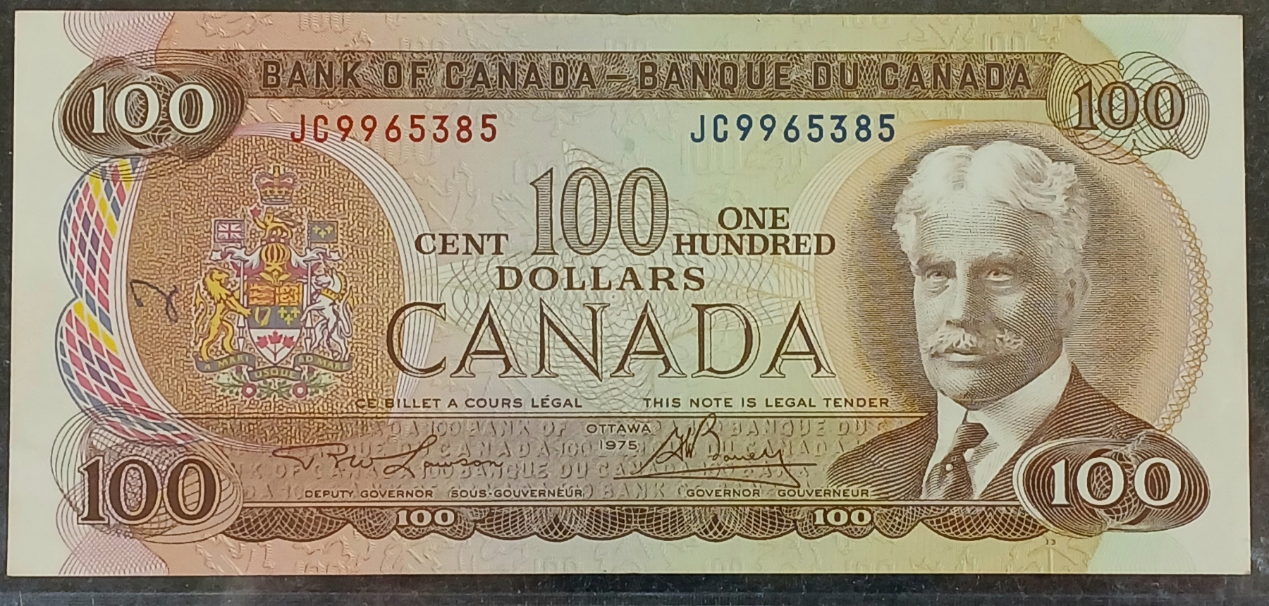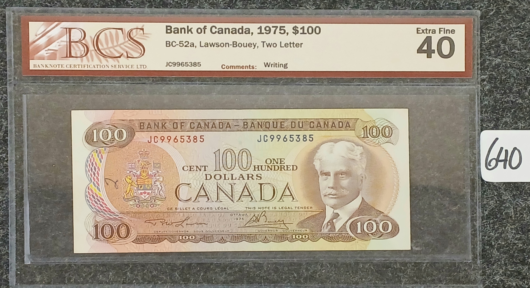 Lot 640 1975 CDN $100 BANKNOTE - BCS GRADED