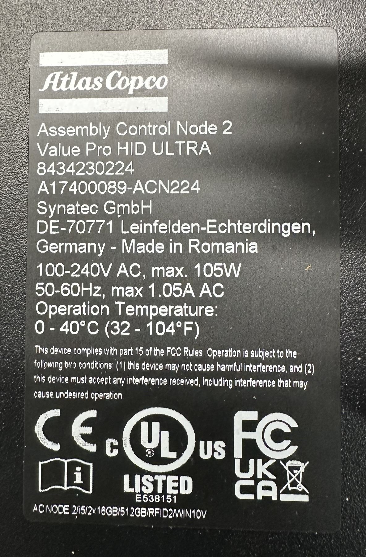 Lot 50 (2) Atlas Copco #8434230224 Assembly Control Node 2 Value Pro HD Ulta Touch Screens