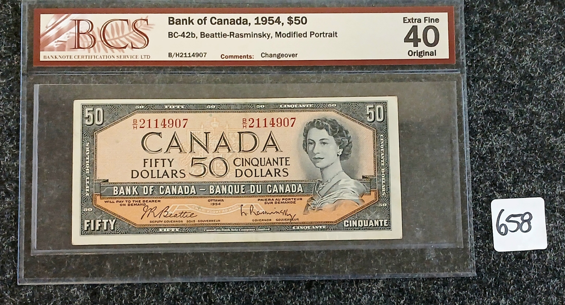 Lot 658 1954 CDN $50 BANKNOTE - BCS GRADED