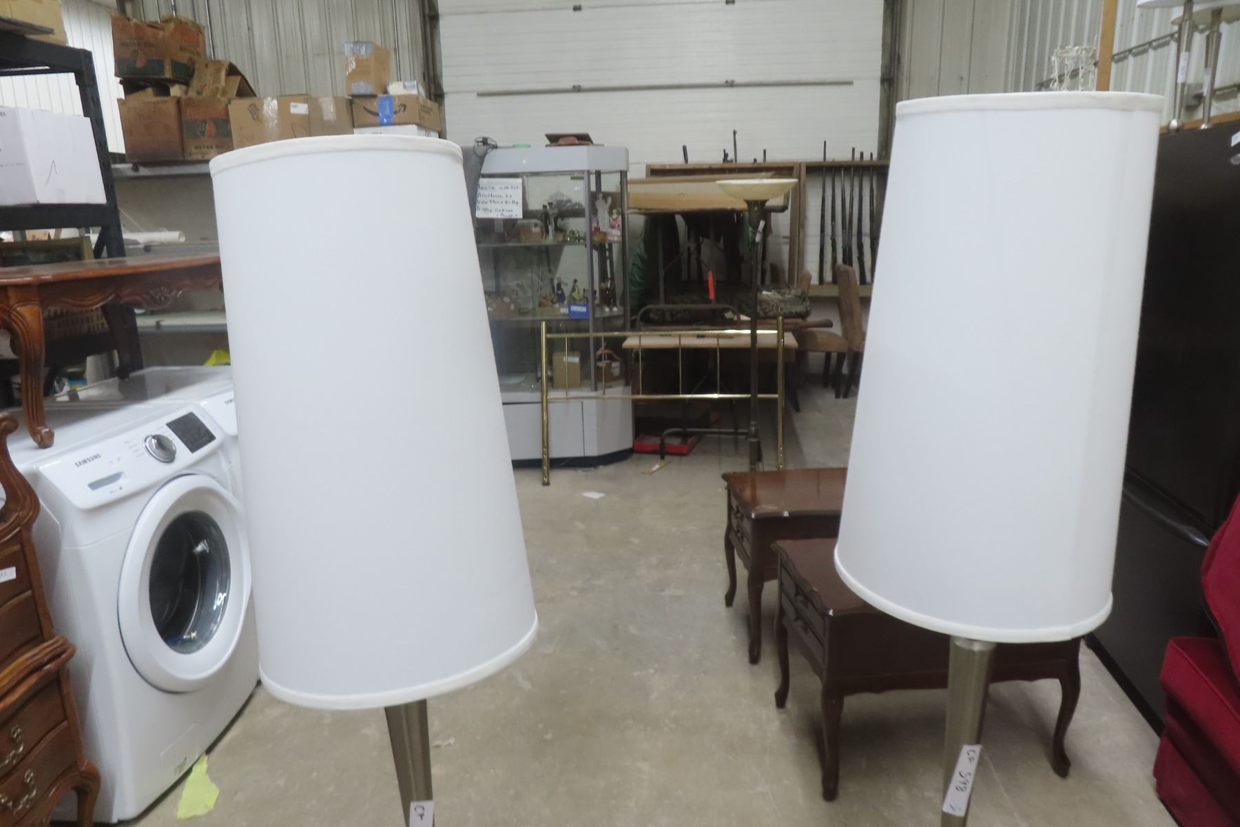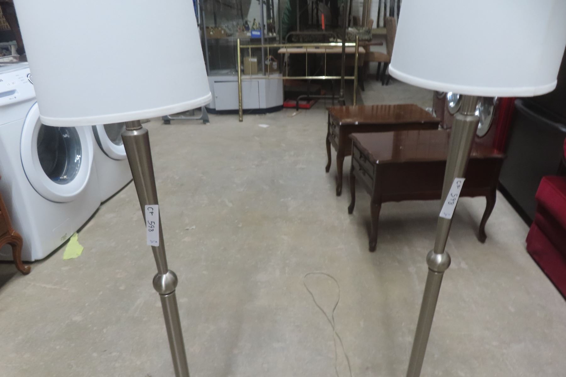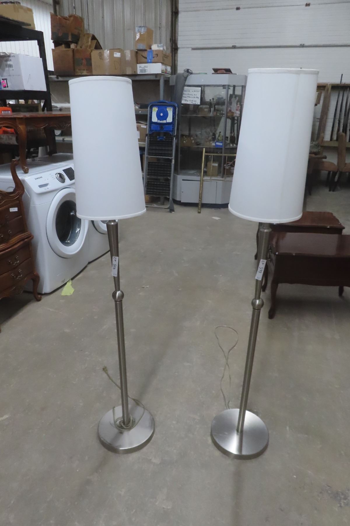 Lot 598A 2 Matching Modern Stainless Steel Floor Lamps