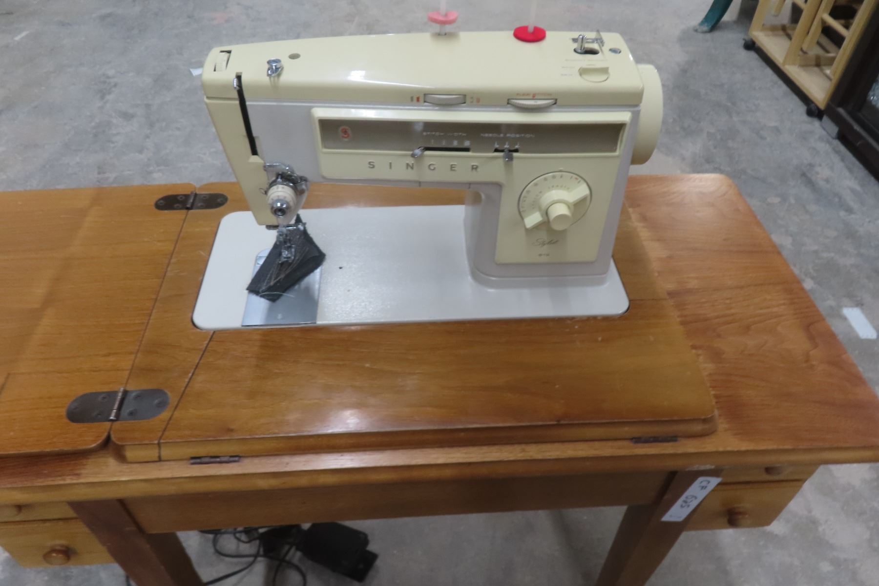 Lot 626 Singer Electric Cabinet Sewing Machine w/ Stool