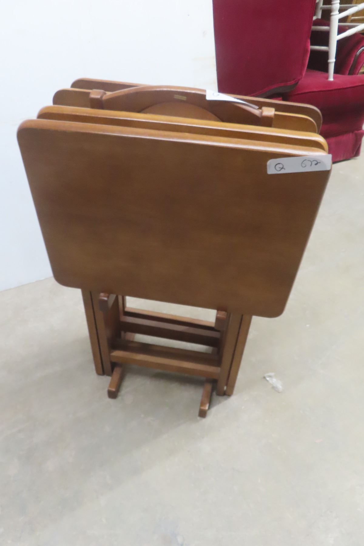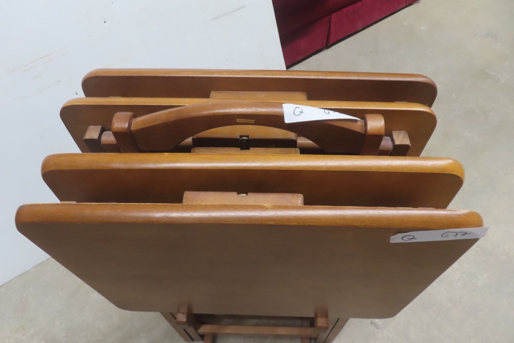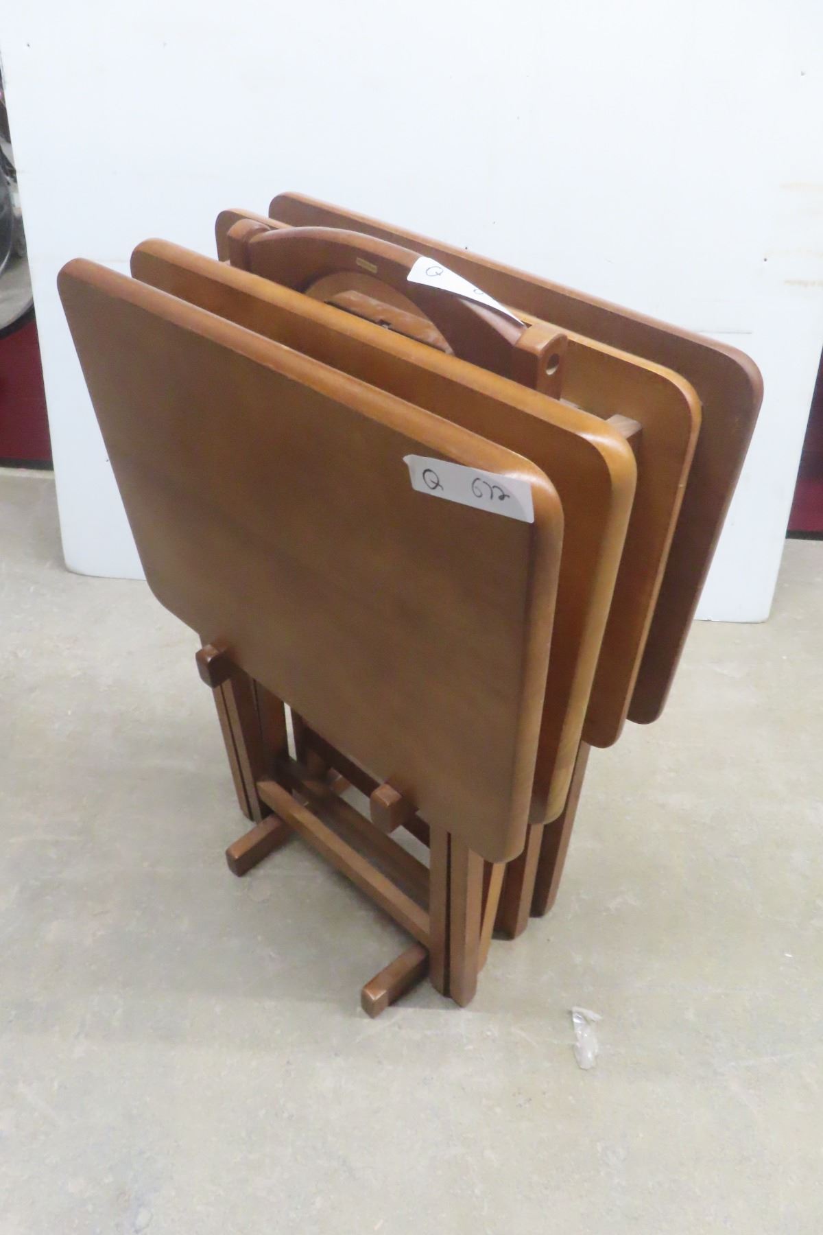 Lot 672 4 Wooden Folding TV Tables w/ Rack/Stand