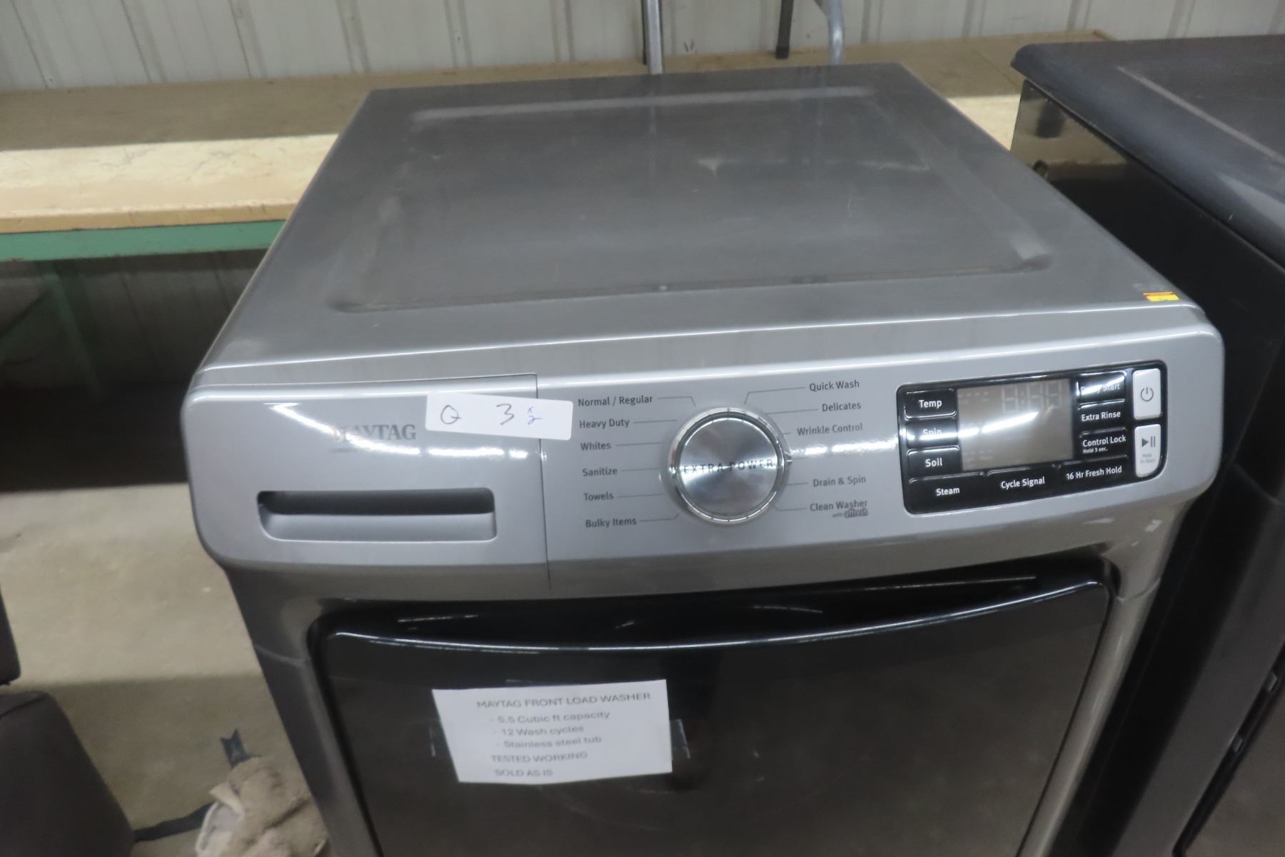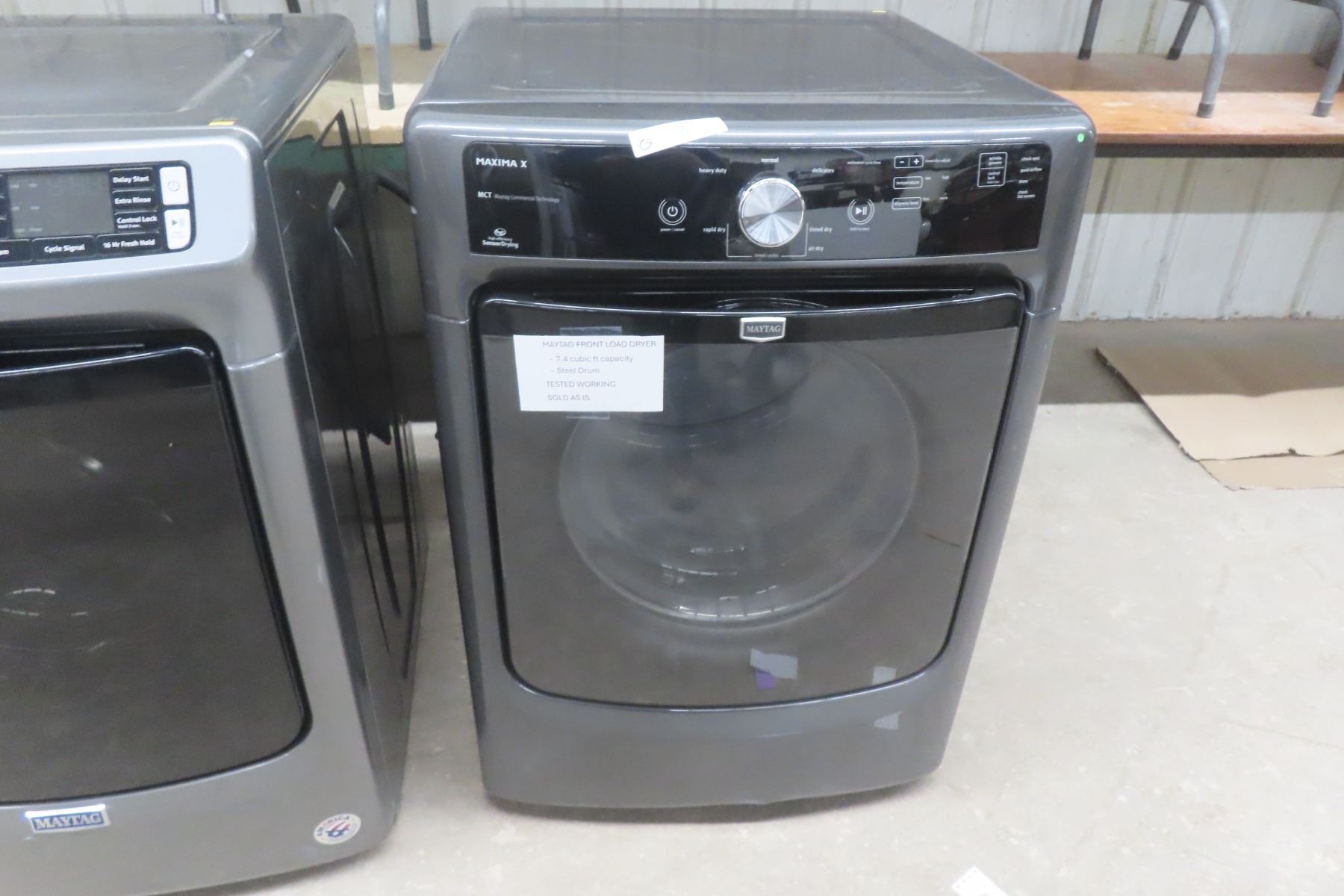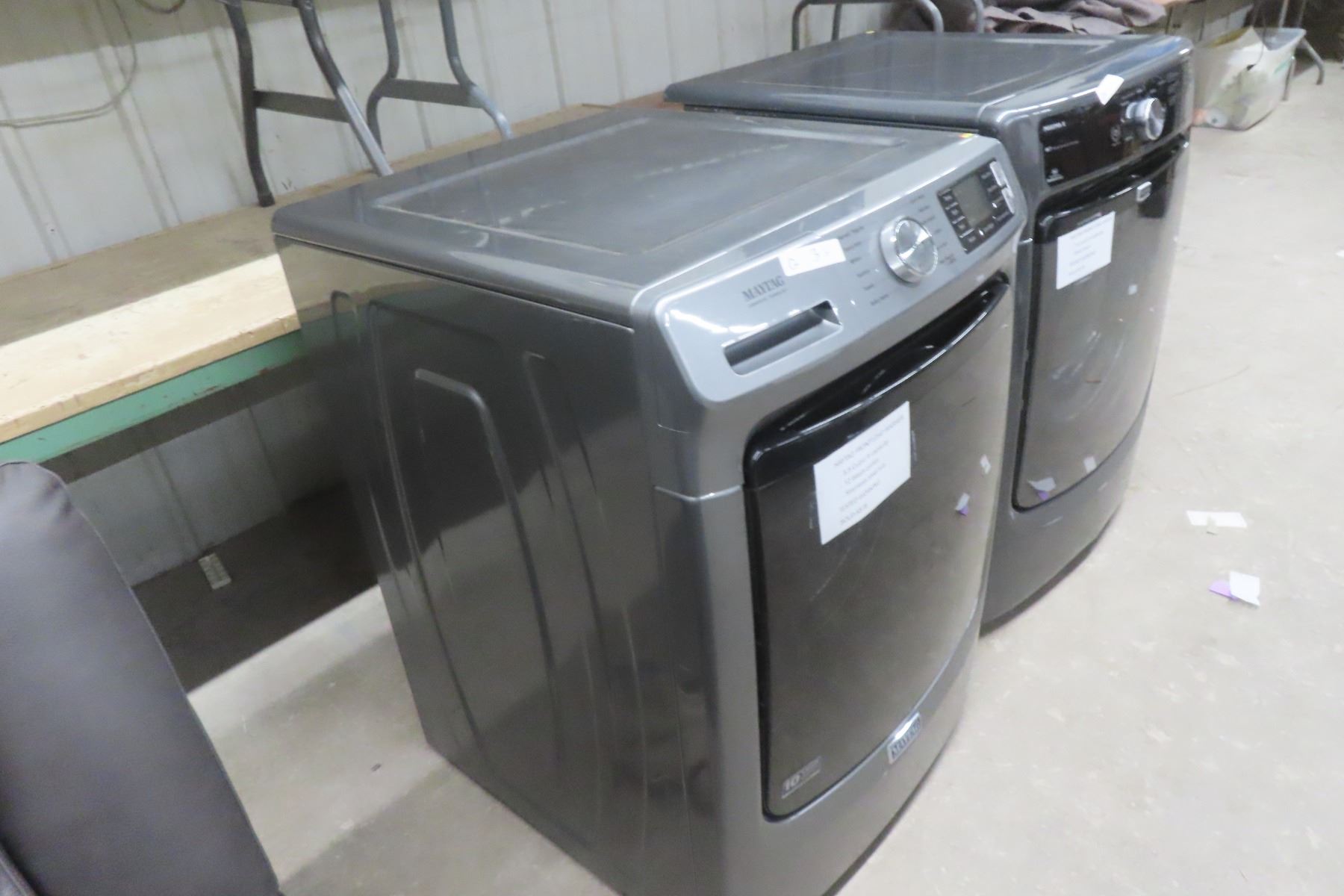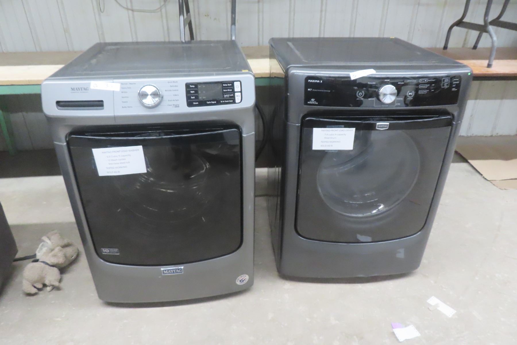Lot 3 Maytag Front Load Washer 5.5 Cu Ft, 12 Cycles, SS Tub, and Dryer 7.4 Cu Ft, Steel Drum