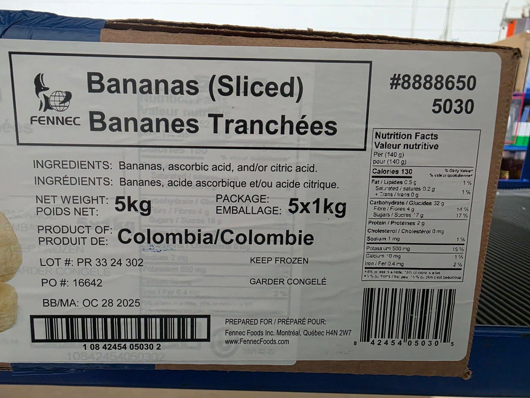 Lot 512 FROZEN Fennec Sliced Bananas 5kg Case