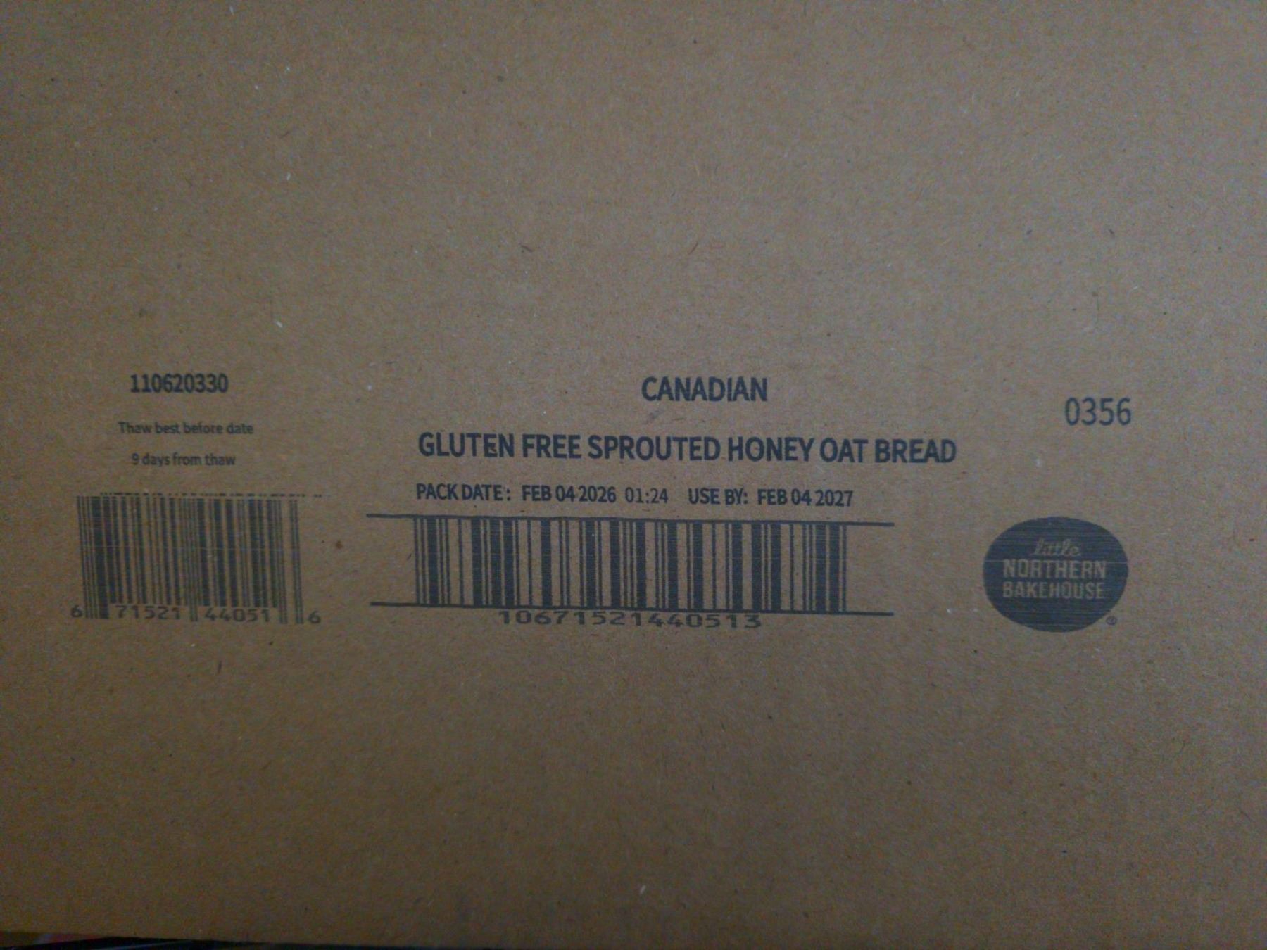 Lot 548 Sprouted Honey Oat Gluten Free Bread 6x482g