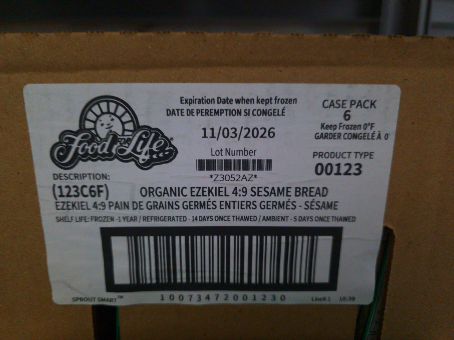 Lot 558 Food For Life Ezekiel 4:9 Sesame Bread 6x680g