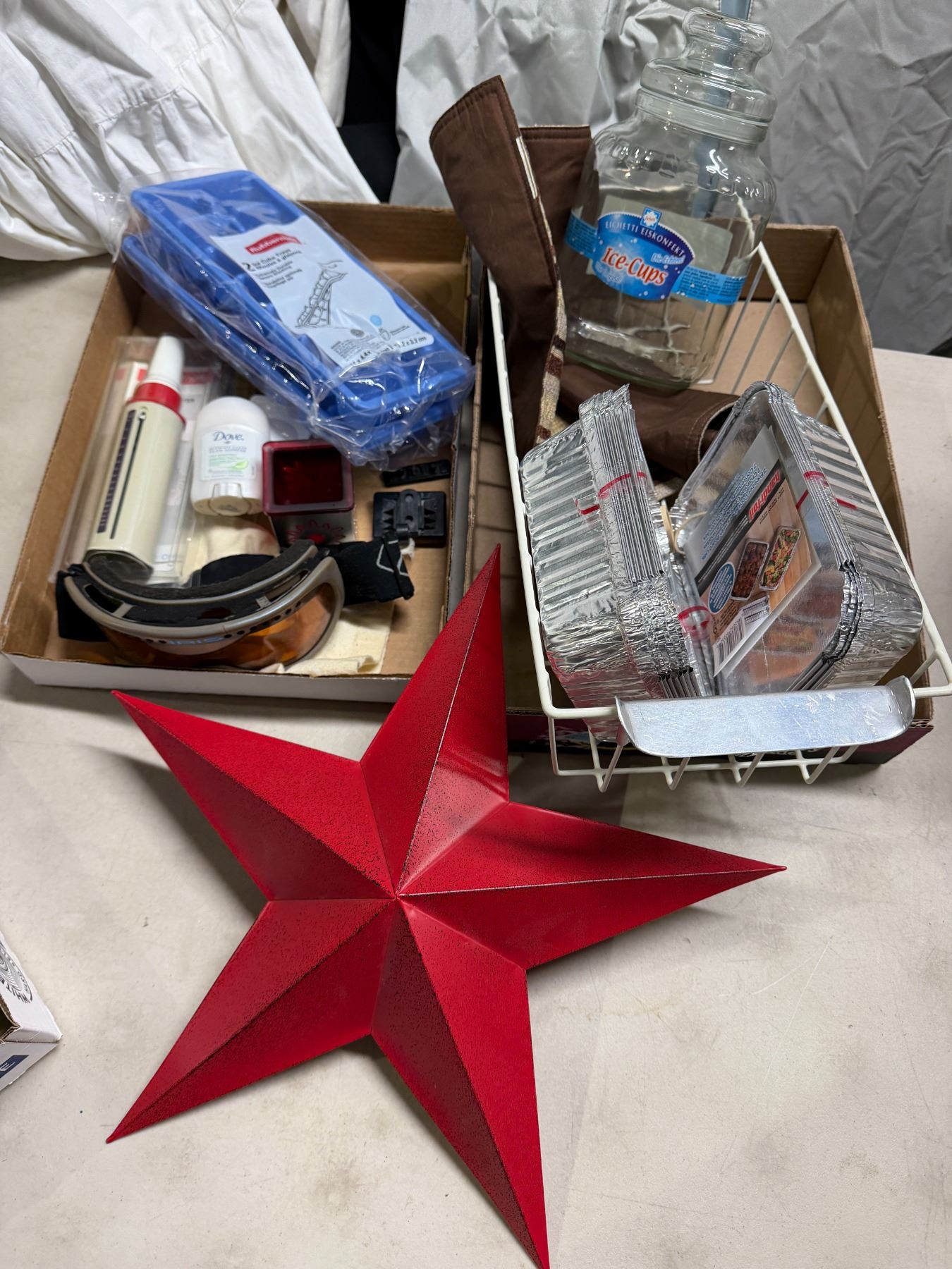 Lot 1344 Miscellaneous light, Peak flow meter ice cube trays goggles, disposable tins, Star basket, etc.