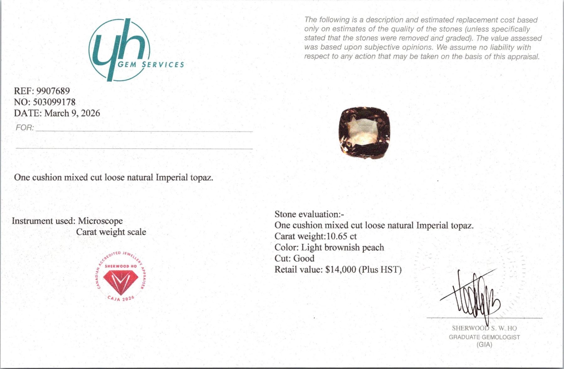 Lot 762B 10.65 ct Certified Imperial Topaz gemstone Untreated ($14,000 Appraisal)