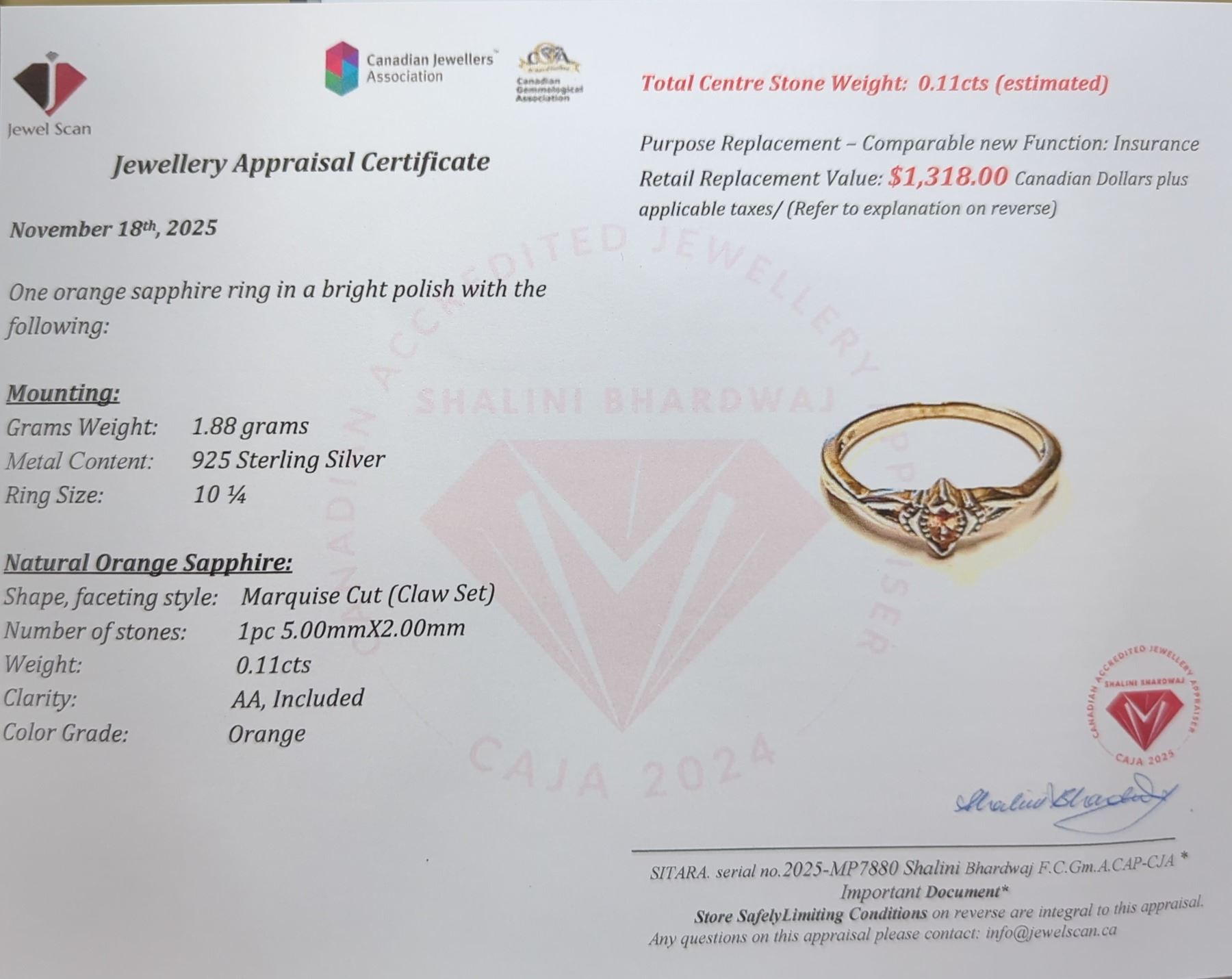Lot 765B 1.88 ct Certified Silver Sapphire gemstone Ring ($1,318 Appraisal)