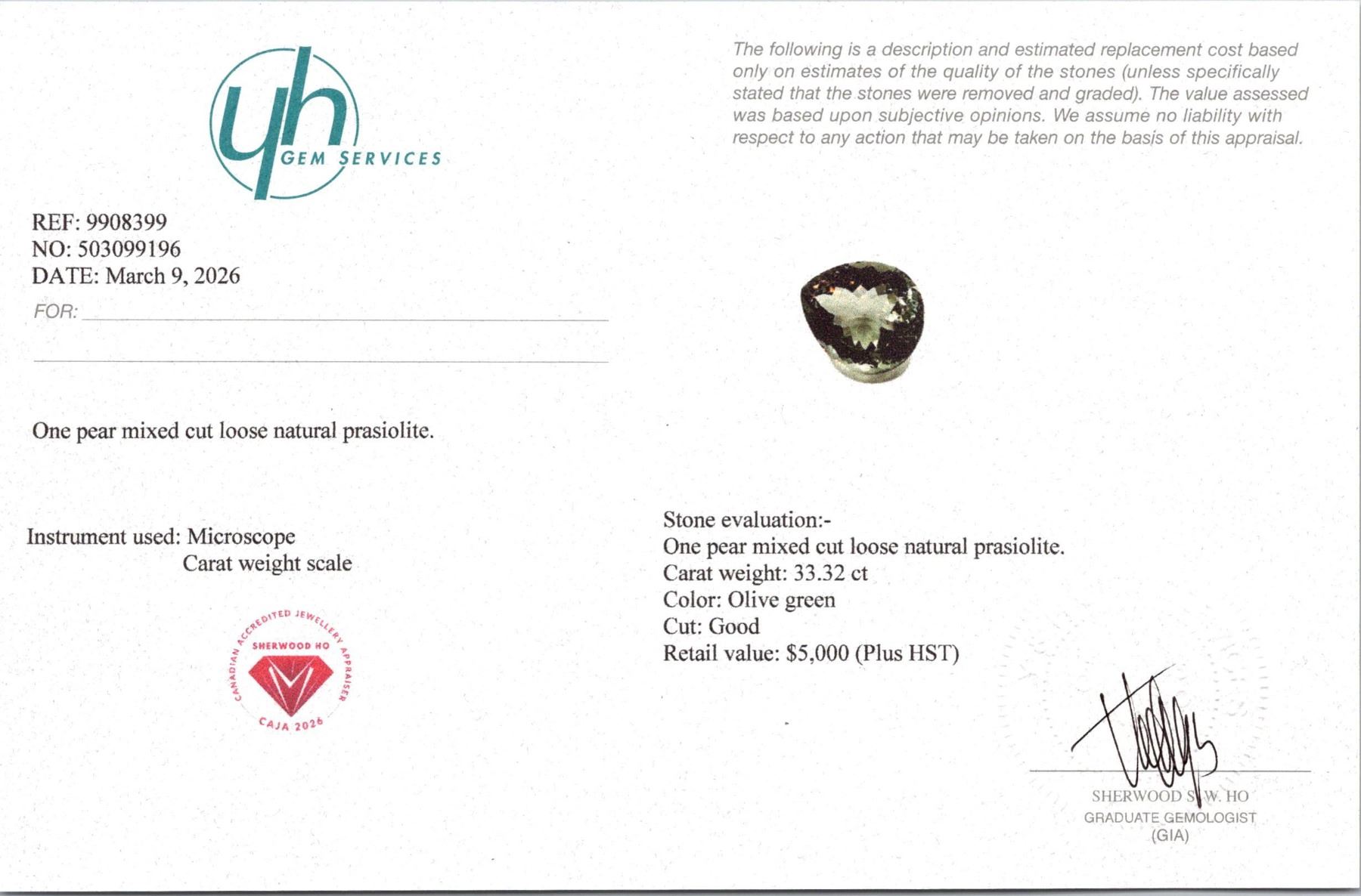 Lot 774B 33.32 ct Certified Green Amethyst - Prasiolite gemstone ($5,000 Appraisal)