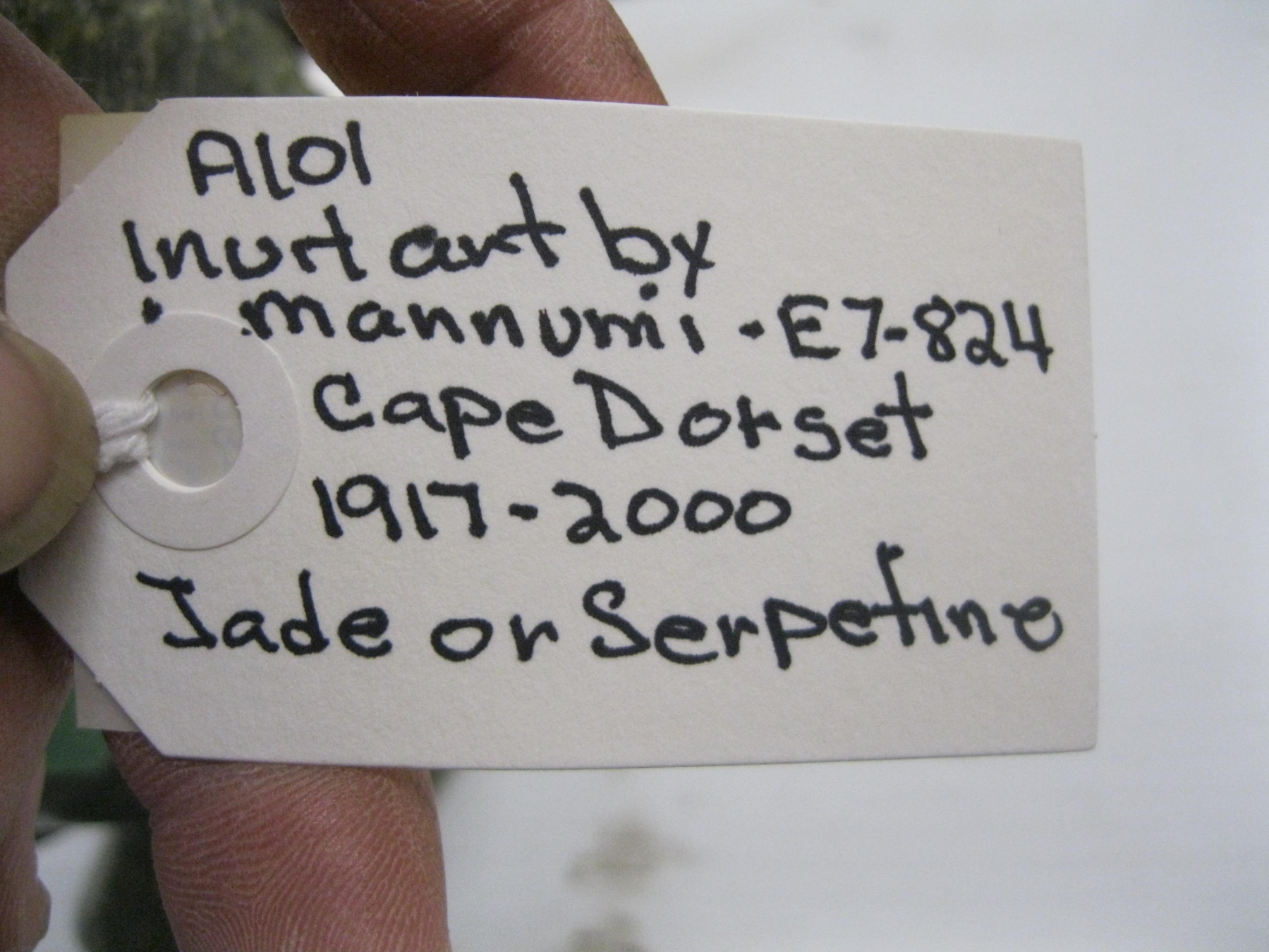 Lot 513 INUIT ART BY MANNUMI, CAPE DORSET, JADE OR SERPENTINE